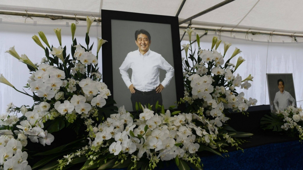 รัฐพิธีศพของนายอาเบะ กำหนดจัดขึ้นในวันที่ 27 กันยายนนี้ ที่สนามกีฬานิปปอน บูโดกัน ในกรุงโตเกียว โดยค่าใช้จ่ายในการจัดงานทั้งหมดจะมาจากงบประมาณรัฐ แต่จากการสำรวจความเห็นของประชาชนชาวญี่ปุ่น พบว่ามีผู้ไม่เห็นด้วยกับการจัดรัฐพิธีศพดังกล่าวเพิ่มขึ้นอย่างต่อเนื่อง ผลสำรวจความคิดเห็นล่าสุดเมื่อวันที่ 21 สิงหาคมที่ผ่านมา พบว่าผู้ตอบแบบสอบถามคัดค้านการจัดรัฐพิธีศพครั้งนี้ถึง 53%