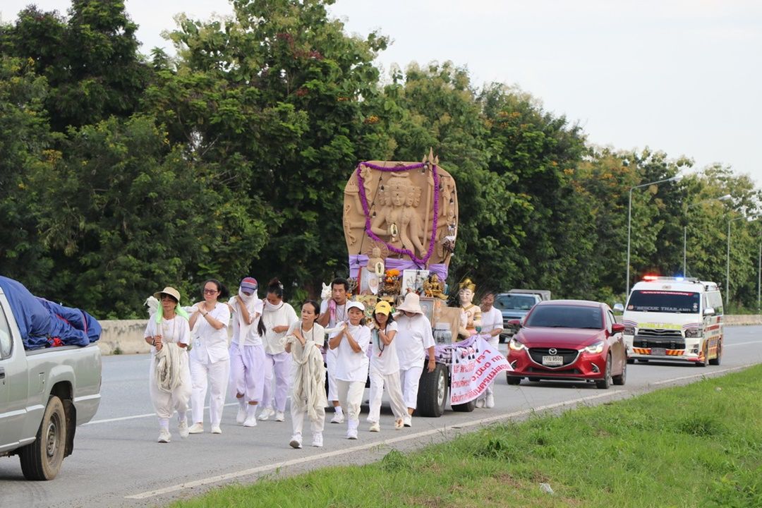 ฮือฮา! “อาจารย์เจ” พร้อมศิษย์ร่วมกันลากราชรถ “พระศรีอริยเมตไตรย” และ “พระแม่ศรีมหาตารา” น้ำหนักกว่า 5,000 กิโลกรัมจาก “นครรังสิต” ไปยัง “นครแม่สอด” ใช้เวลา 100 วันถึง