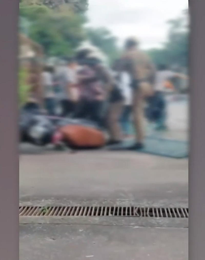 สักพักหนึ่งก็มีนักศึกษาที่ตามมาสมทบเดินมาถามว่า “มึงทำอะไร” แล้วก็ชกเลย แล้วก็ถูกอีก 4 คนตามมากระทืบ ปาโทรศัพท์ลงพื้น ซึ่งไรเดอร์ก็ห่วงเรื่องโทรศัพท์มาก เพราะเป็นเรื่องการทำงาน พอจะตามไปเก็บโทรศัพท์ ก็ถูกไล่ว่า “ไปเดี๋ยวนี้เลย ถ้ายังไม่ไปเจอกูแน่”
