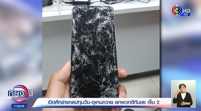 จากเหตุกรณีนักศึกษา 2 สถาบันยกพวกตีกันที่ลานสนามกีฬาแห่งชาติ เกือบ 50 คน เจ้าหน้าที่ สน.ปทุมวัน เข้าระงับเหตุ ล่าสุด รายการเที่ยงวันทันเหตุการณ์ รายงานว่า จากเหตุการณ์ดุเดือดในครั้งนี้ มีไรเดอร์หนุ่มวัย 19 ปี ได้รับลูกหลงบาดเจ็บสาหัส ทั้งยังพบว่าโทรศัพท์มือถือได้รับความเสียหาย