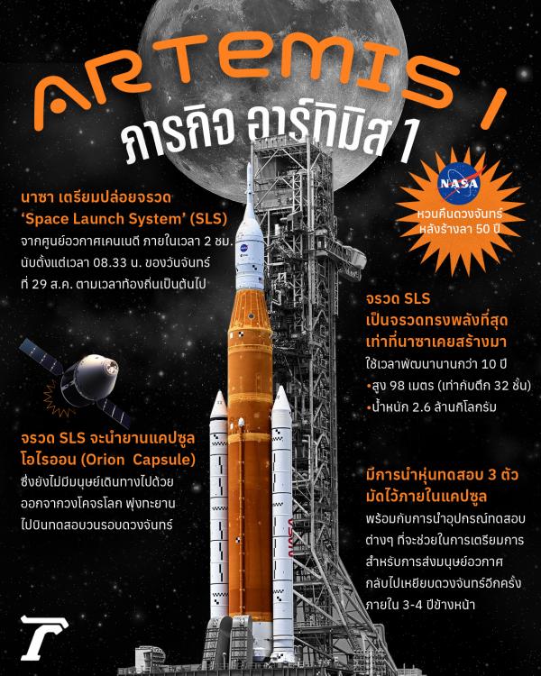 นาซามีกำหนดปล่อยจรวด ‘Space Launch System’ (SLS) จากศูนย์อวกาศเคนเนดี รัฐฟลอริดา ประเทศสหรัฐอเมริกา ภายในเวลา 2 ชม. นับตั้งแต่เวลา 08.33 น. ของวันจันทร์ที่ 29 ส.ค. ตามเวลาท้องถิ่น หรือตรงกับเวลา 18.33 น. ตามเวลาในประเทศไทยเป็นต้นไป