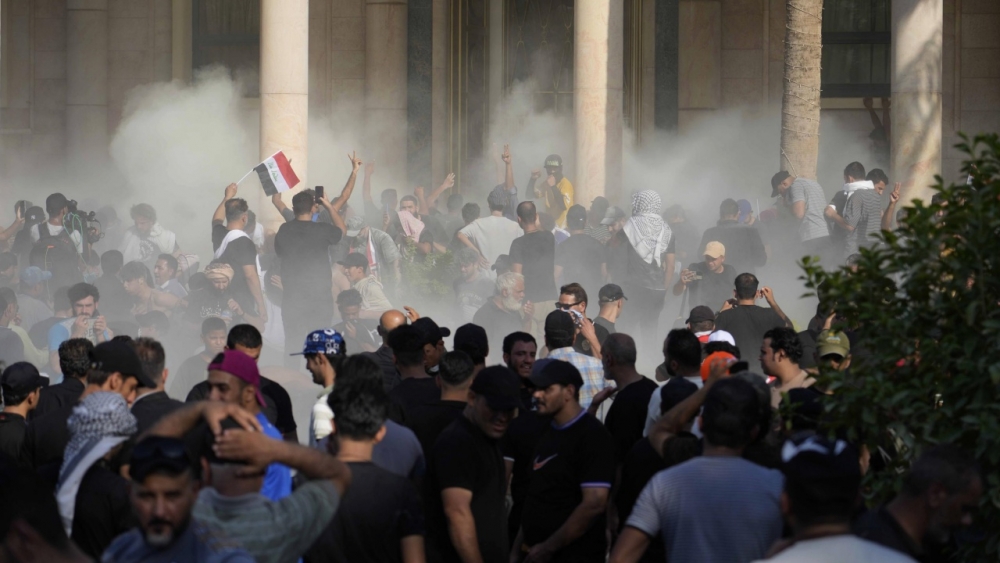 เจ้าหน้าที่กล่าวว่ามีผู้ได้รับบาดเจ็บอีกหลายสิบคน หลังจากผู้ประท้วงที่ภักดีต่อ นายมุกตาดาร์ อัล-ซาดร์ นักการศาสนานิกายชีอะห์ และนักการเมืองชื่อดังของอิรัก ซึ่งมีจุดยืนต่อต้านตะวันตก บุกล้อมทำเนียบประธานาธิบดีในกรุงแบกแดด หลังจาก นายอัล-ซาดร์ ประกาศยุติบทบาททางการเมือง ถนนหลายสายในกรุงแบกแดดเต็มไปด้วยรถกระบะที่ขนมือปืน ปืนกล และเครื่องยิงกระสุน