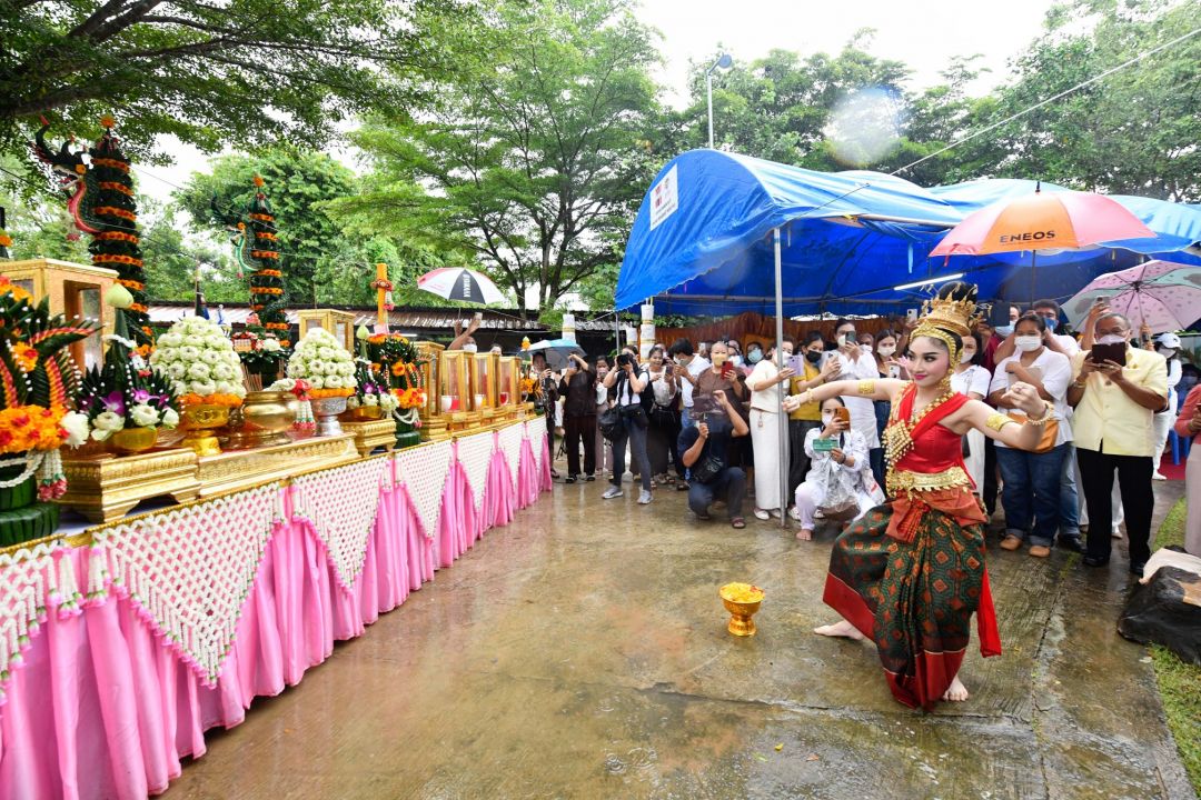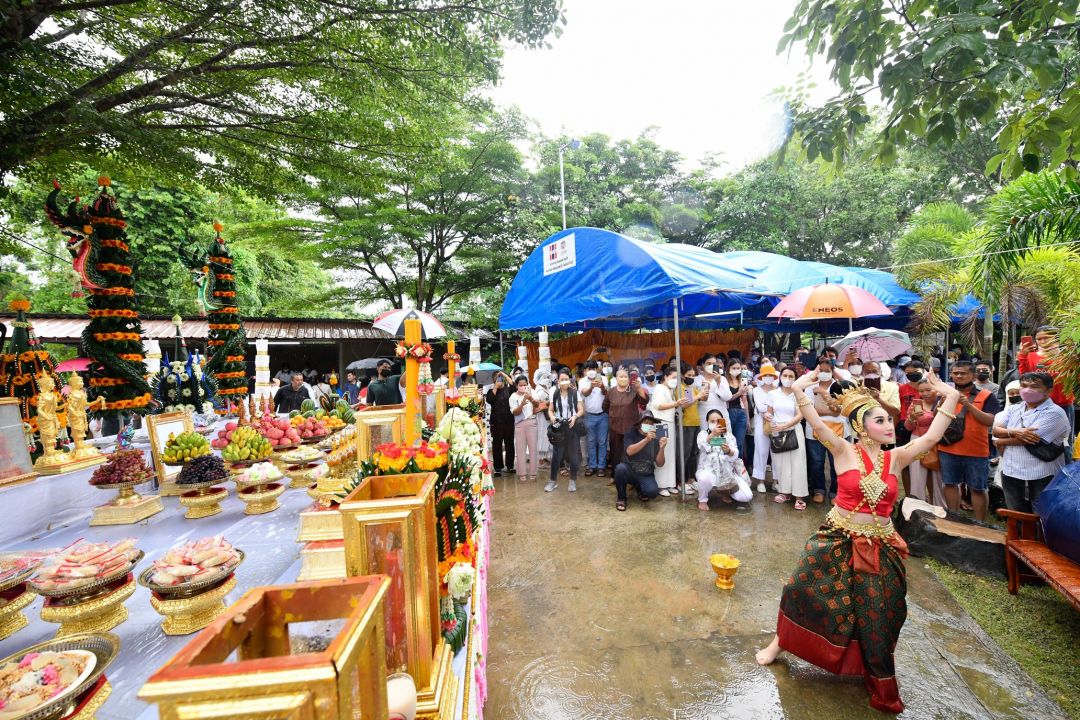 เลขเด็ด ‘มิสแกรนด์ปราจีน’รำฝ่าสายฝน บวงสรวงท้าวเวสสุวรรณ