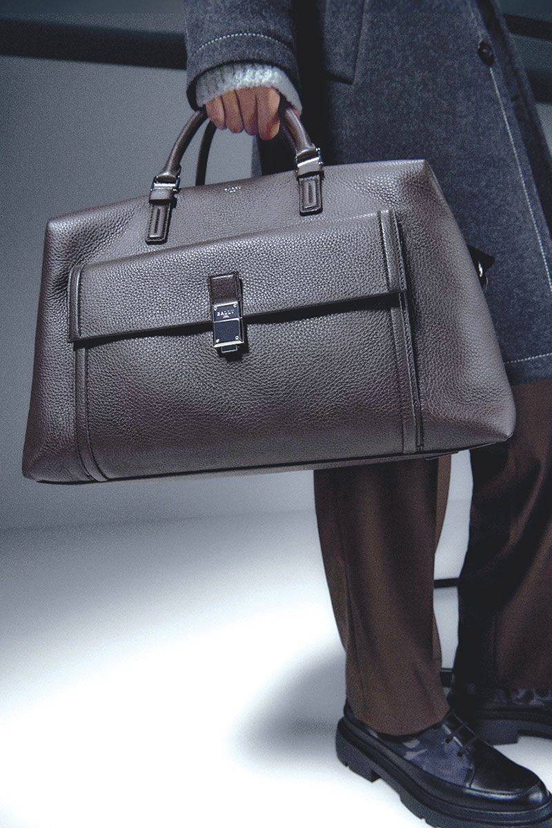 ส่วนกระเป๋า เป็นรุ่น Cliff ผลิตด้วยวัสดุหนังฟอกฝาด มาพร้อมกับรายละเอียดการทอที่หรูหราเลียนแบบโครงร่างที่เป็นเอกลักษณ์ของ Bally Stripe ซึ่งแสดงให้เห็นถึงความเป็นหนึ่งในงานฝีมือ กระเป๋าสะพายดัฟเฟิลผลิตจากเส้นใยไนลอนเนื้อนุ่มในสีขาวและสีดำเนื้อแมทช์ ผลิตจากเส้นด้ายที่ผ่านการรับรองโดย GRS แสดงให้เห็นถึงการออกแบบเพื่อตอบโจทย์การใช้งานอย่างอเนกประสงค์อุปกรณ์โลหะและซิปเพื่อการสวมใส่ที่หลากหลายเป้สะพายหลังรุ่น Breeze ผลิตจากหนังแนปป้า บุนวมเนื้อนุ่มเน้นรายละเอียดการปักควิลท์โดยกระเป๋าในกลุ่มรุ่น Scribe ที่มาพร้อมสไตล์เป็นทางการ แต่คุณผู้ชายก็เลือกสะพายได้ในวันหยุดสบายๆ ไปจนถึงเลือกสะพายข้างได้รับการพัฒนาให้เหมาะสมสำหรับฤดูกาลใหม่ด้วยอุปกรณ์ที่เป็นโลหะและการออกแบบที่ใช้งานได้หลากหลาย