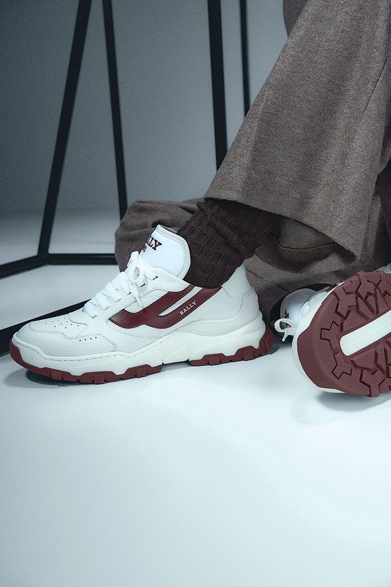 สำหรับ BALLY MAN รองเท้า รุ่น Valais นำเสนอในรูปแบบที่ได้รับแรงบันดาลใจมาใหม่ จากลายพรางอัลไพน์ขนลูกวัวสัมผัสนุ่มไปจนถึงรองเท้ารุ่น Wallabee ที่ได้รับแรงบันดาลใจจากการเดินป่า รองเท้าบู๊ทคอมแบตที่ปรับทรงเข้ารูปเท้าดูทางการ และการผสมผสานวัสดุหนังกลับเพื่อเพิ่มสไตล์ให้ดูสปอร์ตมากขึ้น รองเท้าผ้าใบที่ส่วนของตาข่ายผลิตจากวัสดุรีไซเคิล มาพร้อมกับพื้นรองเท้าลายทาง Bally Stripe หนังลูกวัวแบบเรียบและรองเท้าหนังวัสดุยาง นำเสนอความซับซ้อนของงานฝีมือในระดับสูง รองเท้าทรงออกซ์ฟอร์ดเพิ่มความคล่องตัวในการสวมใส่ด้วยการออกแบบสไตล์นอร์เวย์และพื้นรองเท้าวัสดุหนัง รองเท้าผ้าใบ Holden รุ่นใหม่ โดดเด่นด้วยพื้นรองเท้าแบบหนาและลาย Bally Wing ในวัสดุผสม มีทั้งหนังกลับหนังเคลือบ และเส้นใยไนลอน เพื่อตอบรับกับความตั้งใจในการผสมผสานอดีตเข้ากับปัจจุบันอย่างมีเป้าหมาย ซับในของรองเท้าผ้าใบทั้งหมดได้รับการรับรองจาก GRS และผลิตขึ้นจากขวดพลาสติกรีไซเคิลในขณะที่วัสดุหนังมาจากโรงฟอกหนังที่ได้รับการรับรองโดย Leather Working Group หรือ ISO