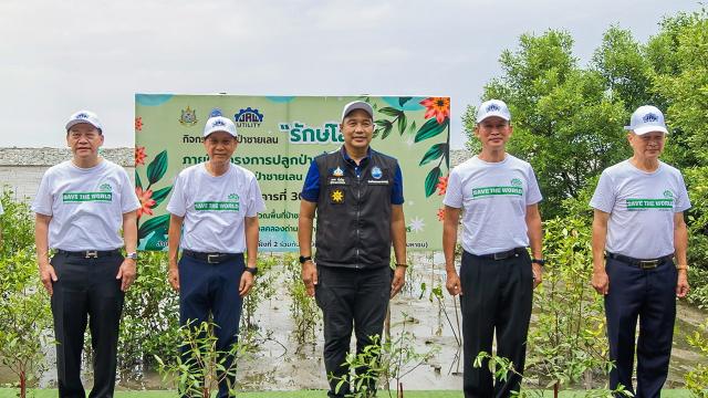 “ธเนศ-นนทิกร-จรัญ” ปลูกป่าชายเลนเพื่อป้องกันไฟป่า ณ ป่าชายเลนชายทะเลสีล้ง