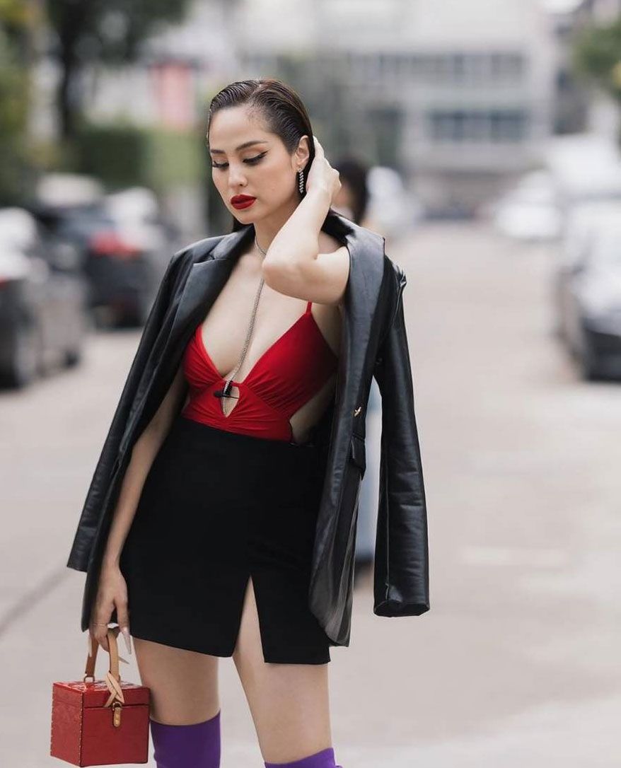 2 ก.ย.65 เซ็กซี่ขั้นสุดเลยทีเดียวสำหรับ “ขวัญ อุษามณี ไวทยานนท์” ที่ปัจจุบันอายุ 34 ปีแล้วแต่ก็ยังคงดูแลตัวเองเป็นอย่างดี ล่าสุด สาวขวัญ ได้อวดลุคสุดปัง ในชุดเสื้อสายเดี่ยวสีแดงผ่าอกแหวกข้างโชว์งานผิวขาวเนียนกระแทกตา มาพร้อมเสื้อแจ็กเก็ตหนังสีดำคลุมไหล่ ส่วนท่อนล่างใส่กระโปรงสอบสั้นผ่าข้างสีดำ เพิ่มความเก๋ไก๋ด้วยรองเท้าบูตสีม่วงคลุมยาวถึงต้นขา มองแล้วทำหนุ่มๆใจสั่นไม่เบาเลยทีเดียว