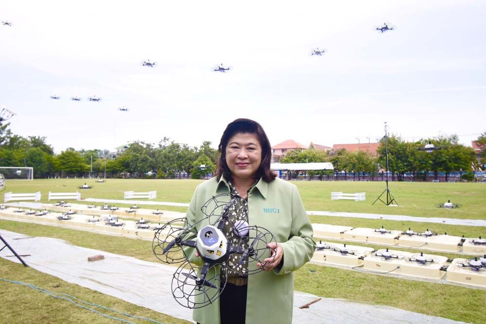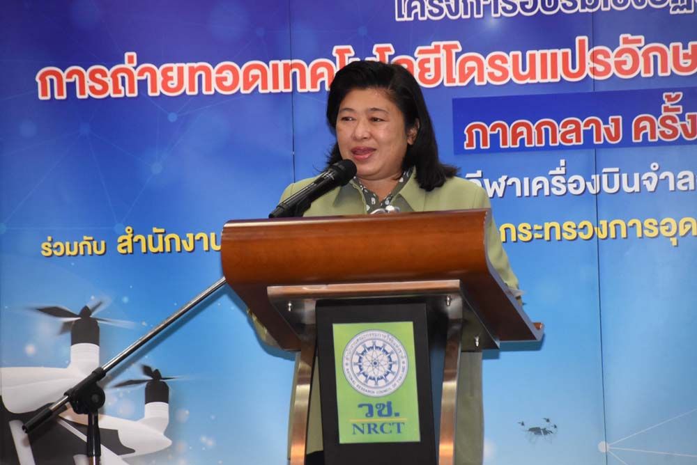 ดร.วิภารัตน์ ดีอ่อง ผู้อำนวยการสำนักงานการวิจัยแห่งชาติ กล่าวว่า วช. ภายใต้กระทรวง อว. ตระหนักถึงความสำคัญในการพัฒนาเทคโนโลยีในโลกอนาคต ซึ่งปัจจุบันมีการนำเทคโนโลยีโดรนมาใช้งานในด้านต่าง ๆ มากขึ้น ทำให้โดรนสามารถทำงานแทนมนุษย์ได้ และสามารถรองรับการใช้งานในภารกิจที่หลากหลายได้อย่างมีประสิทธิภาพ ดังนั้น วช.จึงได้ให้การสนับสนุนสมาคมกีฬาเครื่องบินจำลองและวิทยุบังคับ ในการจัดโครงการ “อบรมเชิงปฏิบัติการการถ่ายทอดเทคโนโลยีโดรนแปรอักษรเพื่อประยุกต์สู่การใช้งาน” เพื่อถ่ายทอดองค์ความรู้เทคโนโลยีที่ทันสมัย ตลอดจนส่งเสริมสนับสนุนและพัฒนาองค์ความรู้ด้วยการผสมผสานเทคโนโลยีอากาศยานไร้คนขับ หรือ โดรน มาปรับใช้กับการทำงานในงานด้านต่าง ๆ โดยการอบรมครั้งนี้จัดขึ้นเป็นครั้งที่ 4 และเป็นครั้งสุดท้ายของภาคกลาง ซึ่งจะก่อให้เกิดพัฒนาด้านการศึกษาให้เกิดการสร้างนวัตกรรม สิ่งประดิษฐ์ใหม่ ๆ สร้างนวัตกรในประเทศ ให้มีความรู้ความชำนาญและมีประสบการณ์ในด้านนี้เพิ่มมากขึ้น เกิดการพัฒนาความก้าวหน้าทางเทคโนโลยีอย่างต่อเนื่อง รองรับการขยายตัวของเทคโนโลยี ด้านการบินในอนาคต อันจะเป็นประโยชน์ต่อการพัฒนาประเทศต่อไป
