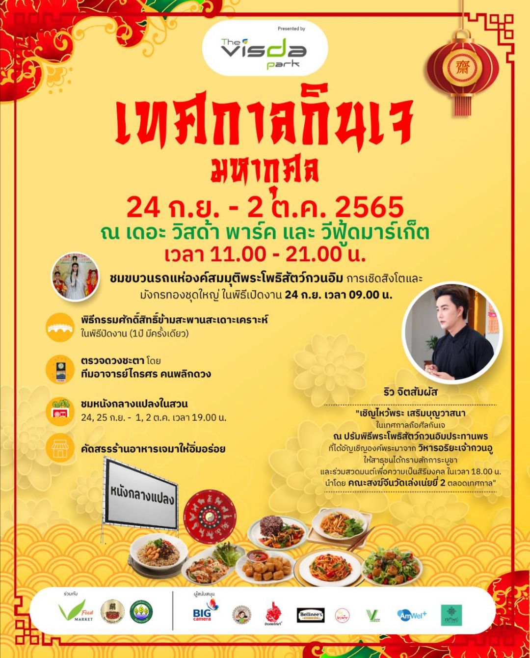 “เดอะ วิสด้า พาร์ค (The Visda Park) คอมมูนิตี้มอลล์” ภายใต้การบริหารงานโดย นายบุญชัย เจียรไพศาลเจริญ ประธานกรรมการบริหาร บริษัท บ้านวิดาภา พลาซ่า กรุ๊ป จำกัด ร่วมกับ “วิหารอริยะเจ้ากวนอู” โดย ริว จิตสัมผัส ได้รับความร่วมมือจาก “เทศบาลเมืองใหม่บางบัวทอง”, “วีฟู้ดมาร์เก็ต”, “Big Camera”, “แอมเวลล์พลัส” ชวนสืบสานเทศกาลกินเจสร้างกุศลครั้งใหญ่ ในการจัดงาน “เทศกาลกินเจมหากุศล” ระหว่างวันที่ 24 กันยายน – 2 ตุลาคม 2565 ให้ทุกคนได้อิ่มบุญ อิ่มใจ ล่าสุดมีการเตรียมความพร้อมทุกส่วนงาน และได้จัดพิธีคัดเลือกองค์สมมุติพระโพธิสัตว์กวนอิมเป็นครั้งแรก