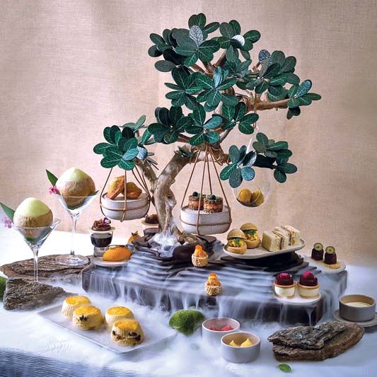 ชุดน้ำชายามบ่าย The Verdant Afternoon Tea โดดเด่นสวยงามอีกทั้งยังช่วยอนุรักษ์สิ่งแวดล้อมด้วยการนำวัสดุเหลือใช้ อย่างใยมะพร้าวและแกลบข้าว มาสร้างสรรค์เป็นชุดชายามบ่ายดีไซน์เก๋ เพิ่มความตระการตาด้วยดรายไอซ์ขาวละมุน ประกอบด้วยชุด Classis Afternoon Tea รสชาติต้นตำรับ สำหรับผู้ที่ชอบความเรียบหรูและชุด Guilt Free Afternoon Tea สำหรับผู้ที่ห่วงใยสุขภาพ ทุกชุดเสิร์ฟคู่กับชาระดับพรีเมียมหลากหลายชนิด รวมทั้งชาสมุนไพรออร์แกนิก ชงโดย ทีมาสเตอร์ ที่จัดเตรียมมาเสิร์ฟให้คุณได้ผ่อนคลาย