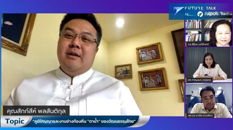 สำนักงานสภานโยบายการอุดมศึกษา วิทยาศาสตร์ วิจัยและนวัตกรรมแห่งชาติ (สอวช.) จัดรายการพูดคุยผ่านช่องทางออนไลน์ ในรายการ Future Talk by NXPO ครั้งที่ 13 ในประเด็น “ภูมิปัญญาและงานช่างท้องถิ่น “ตาน้ำ” ของวัฒนธรรมไทย” โดยรายการในครั้งนี้ ได้รับเกียรติจาก ดร. สิริกร มณีรินทร์ นายกสภาสถาบันวิทยาลัยชุมชน และผู้อำนวยการสถาบันช่างศิลป์ท้องถิ่น ธัชชา ผศ.ดร. ชวลิต ขาวเขียว อดีตคณบดีคณะโบราณคดี มหาวิทยาลัยศิลปากร และนายสักก์สีห์ พลสันติกุล รองประธานหอการค้าจังหวัดน่าน มาร่วมพูดคุย ดำเนินรายการโดย ดร. กาญจนา วานิชกร รองผู้อำนวยการ สอวช. เมื่อวันที่ 5 กันยายน ที่ผ่านมา