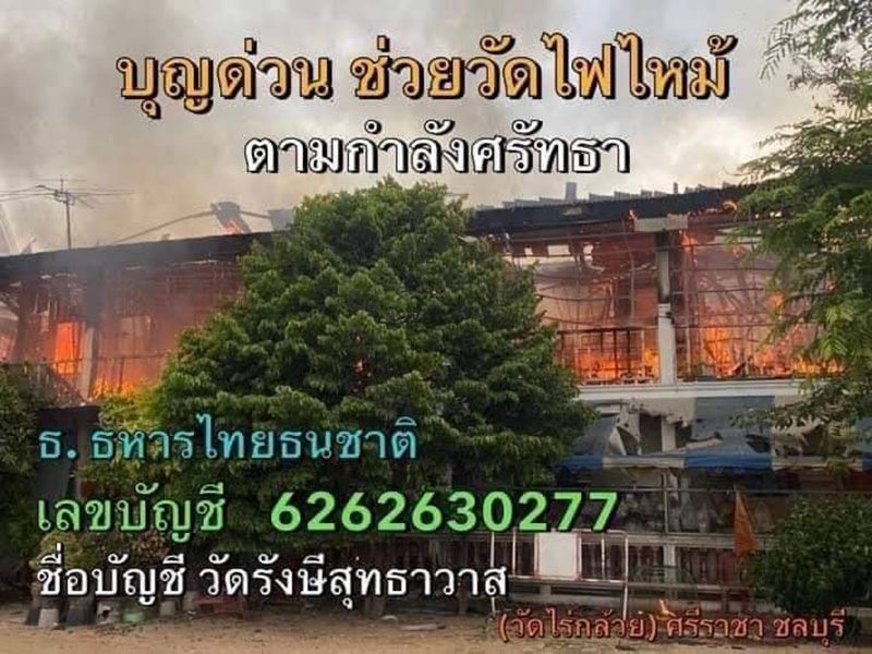 จึงขอบอกบุญมายังลูกศิษย์ หลวงพ่อน้ำหอม ช่วยกันทำบุญตามกำลังศรัทธา ช่วยวัดสร้างกุฏิหลังใหม่กัน และขออนุโมทนาในเจตนาอันเป็นกุศล ขอทุกท่านที่ร่วมบุญจงมีแต่ความสุขความเจริญ ปราศจากทุกข์ สุขภาพแข็งแรง การเงินการงานรุ่งเรือง ทุกท่านเทอญ ร่วมบุญกับท่านโดยตรงที่วัดหรือโอนเข้าบัญชีของวัดรังษีสุทธาวาส(วัดไร่กล้วย) ธนาคาร ทหารไทยธนชาติ (ttb) เลขบัญชี 6262630277 ชื่อบัญชี วัดรังษีสุทธาวาส(ไร่กล้วย) #บุญด่วน ช่วยสร้างกุฏิให้วัดที่ถูกไฟไหม้ ตามกำลังศรัทธา