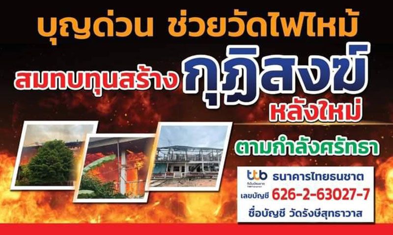 ชวนผู้มีจิตศรัทธาร่วมบุญ สร้างกุฏิโดนไฟไหม้ เผยอานิสงส์สร้างกุฎิ-วิหาร