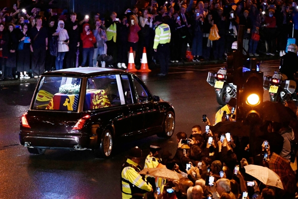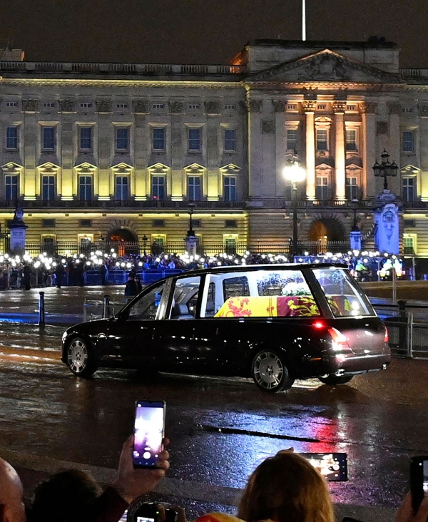 ขบวนราชรถอัญเชิญหีบพระบรมศพของควีนเอลิซาเบธที่ 2 เดินทางจากเมืองเอดินบะระถึงพระราชวังบักกิงแฮม ในกรุงลอนดอนแล้ว โดยมีเจ้าหญิงแอนน์ร่วมเสด็จเคียงข้างหีบพระบรมศพ