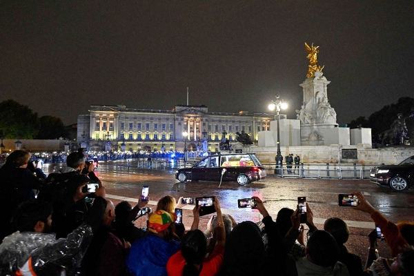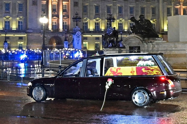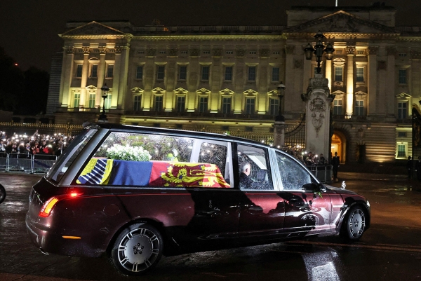 สำนักข่าว ซีเอ็นเอ็น รายงานว่า ราชรถอัญเชิญหีบพระบรมศพสมเด็จพระราชินีนาถเอลิซาเบธที่ 2 เดินทางถึงพระราชวังบักกิงแฮมในกรุงลอนดอนแล้ว เมื่อคืนวันอังคารที่ 13 ก.ย. 2565 โดยมีพระเจ้าชาร์ลส์ที่ 3 สมเด็จพระราชินีคามิลลา พร้อมด้วยพระบรมวงศานุวงศ์ ทรงเฝ้ารอรับพระบรมศพที่พระราชวัง ท่ามกลางประชาชนจำนวนมากที่มาเฝ้ารอ