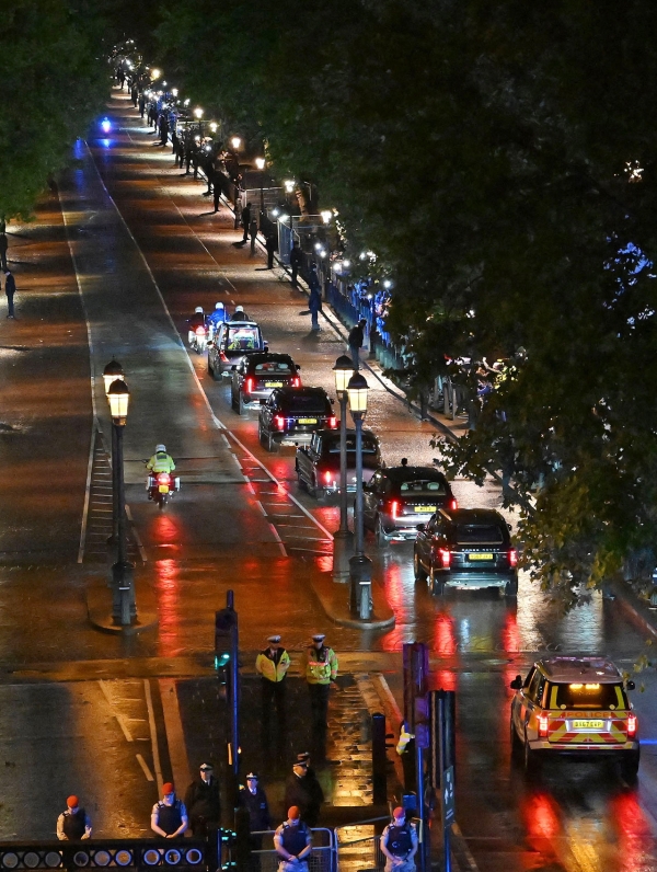 ไม่กี่ชั่วโมงก่อนหน้านั้นพระบรมศพสมเด็จพระราชินีนาถเอลิซาเบธที่ 2 ถูกอัญเชิญจากมหาวิหารเซนต์ไจลส์ ไปยังสนามบินเอดินบะระ สกอตแลนด์ และออกเดินทางสู่กรุงลอนดอนด้วยเครื่องบิน ซี-17 โกลบมาสเตอร์ของกองทัพอากาศอังกฤษ มายังฐานทัพอากาศ นอร์ทโฮลท์ ก่อนจะเชิญพระบรมศพขึ้นราชรถ แล้วมุ่งสู่พระราชวังบักกิงแฮมอย่างช้าๆ