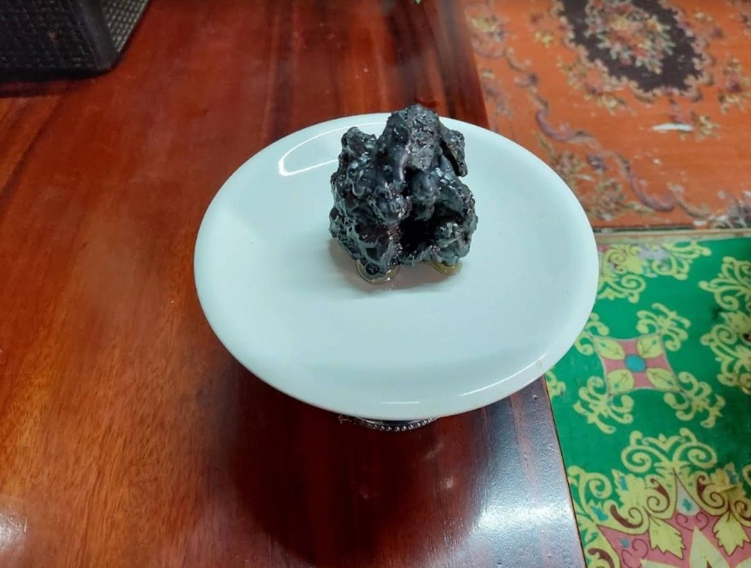 นายสมยศ บอกด้วยว่า สิ่งที่ตนสังเกตเห็นตลอด 8 เดือนที่ผ่านมา คือตนได้เห็นหินคล้ายเหล็กไหลก้อนนี้เดิมทีจะมีขนาดน้ำหนักประมาณ 4 ขีด เมื่อมีการนำบูชาแช่น้ำผึ้งไว้ในพานก้อนหินเหล็กไหลก้อนนี้กลับมีน้ำเหล็กไหลงอกออกมาจากก้อนมีขนาดใหญ่ขึ้นต่อเนื่องตลอด 8 เดือนที่ผ่านมา จนมีขนาดใหญ่ขึ้นกว่า 5 -6 ขีดแล้ว จึงเชื่อว่าน่าจะเป็นวัตถุมงคลตามความเชื่อของคนโบราณ เพราะที่ผ่านมาได้ทำให้คนในครอบครัวมีความสุขที่ได้ปฏิบัติธรรมถือศีล 5 และมีโชคลาภมาอย่างต่อเนื่องไม่ขาด