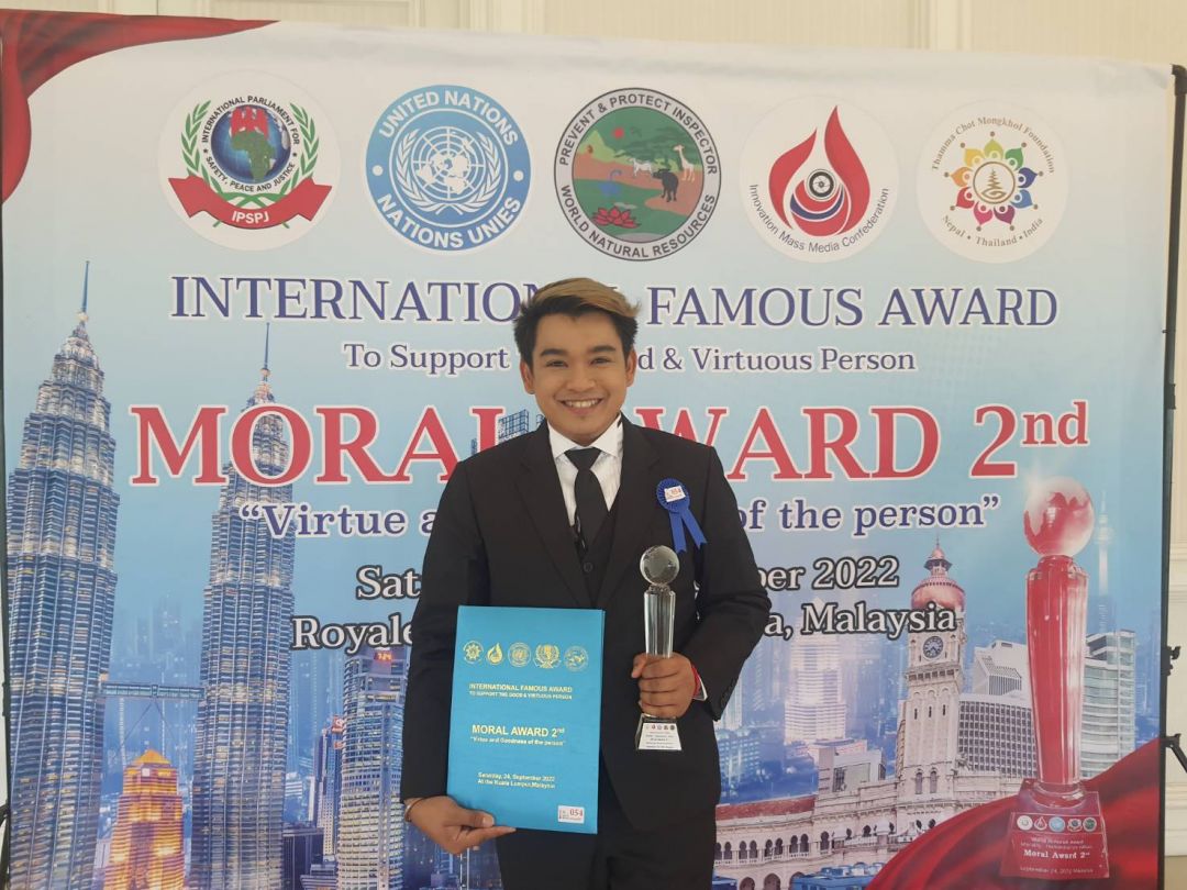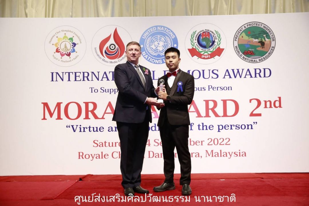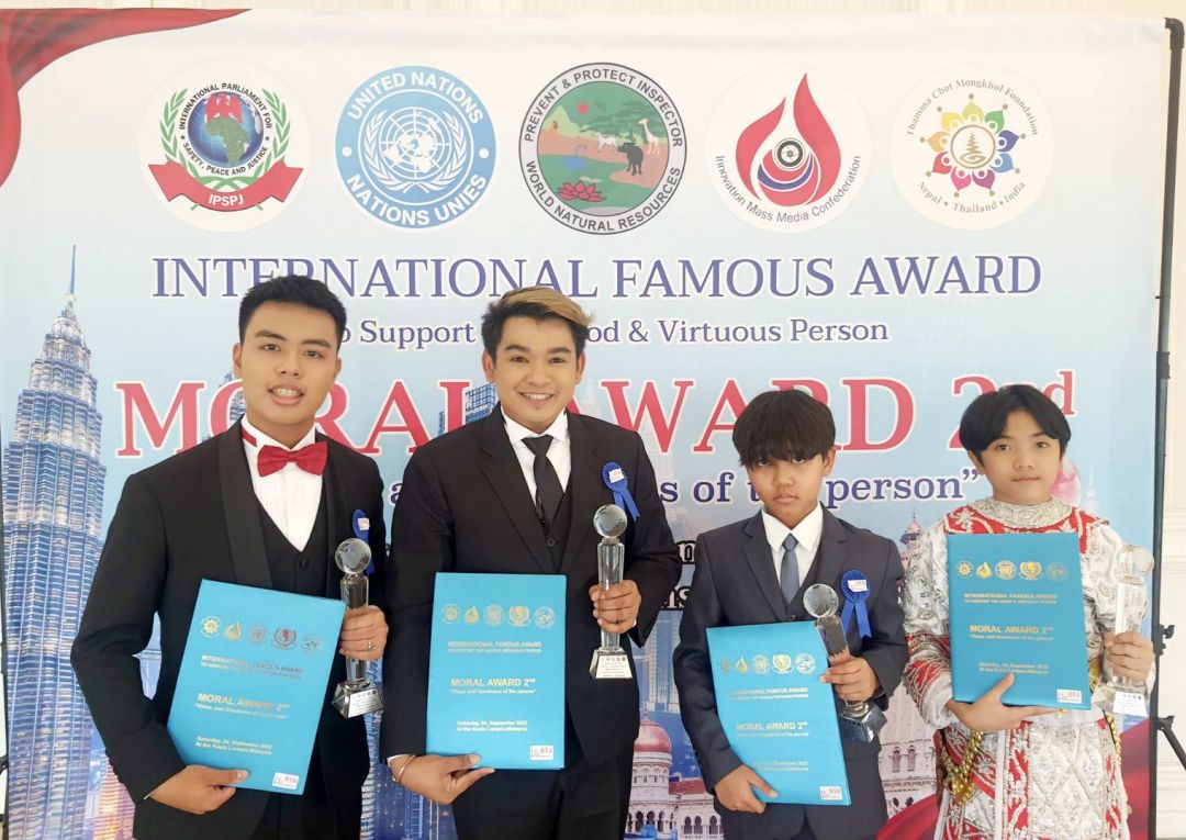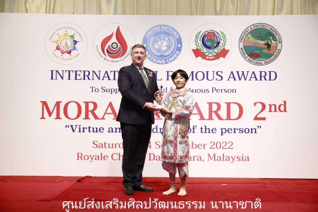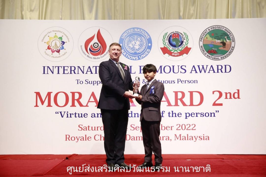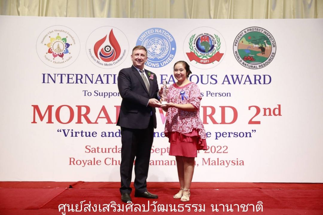สมาพันธ์สื่อสร้างสรรค์ (Innovation Mass Media Confederation) ร่วมกับ มูลนิธิธรรมโชติมงคล ; เนปาล-ไทย- อินเดีย) (Thamma Chot Mongkhol Foundation ; Nepal Thailand India) มูลนิธิองค์การพิทักษ์ความปลอดภัยทรัพยากรธรรมชาติสิ่งแวดล้อมโลก (World Natural Resources Safety Protection Foundation Administration) และรัฐสภาระหว่างประเทศ เพื่อความปลอดภัย สันติภาพ และความยุติธรรม แห่งองค์การสหประชาชาติ (International Parliament for Safety and Peace Justice – United Nations) (IPSPJ -UN) แสดงความยินดีกับนักเรียน นักศึกษาที่ผ่านเกณฑ์ เข้ารับโล่ และเกียรติบัตรจาก โครงการรางวัลเกียรติคุณนานาชาติMORAL AWARD ครั้งที่ 2/2″คุณธรรม คุณค่า แห่งบุคคล” เมื่อวันเสาร์ที่ 24 กันยายน 2565 ที่ผ่านมา ณ กรุงกัวลาลัมเปอร์ ประเทศมาเลเซียโดยมีรายชื่อบุคคลที่ได้รับคัดเลือกรับโล่ จากประเทศไทย ได้แก่