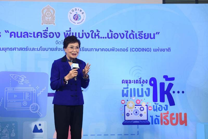 ‘คุณหญิงโค้ดดิ้ง’เปิดตัวโครงการ‘คนละเครื่อง พี่แบ่งให้…น้องได้เรียน’