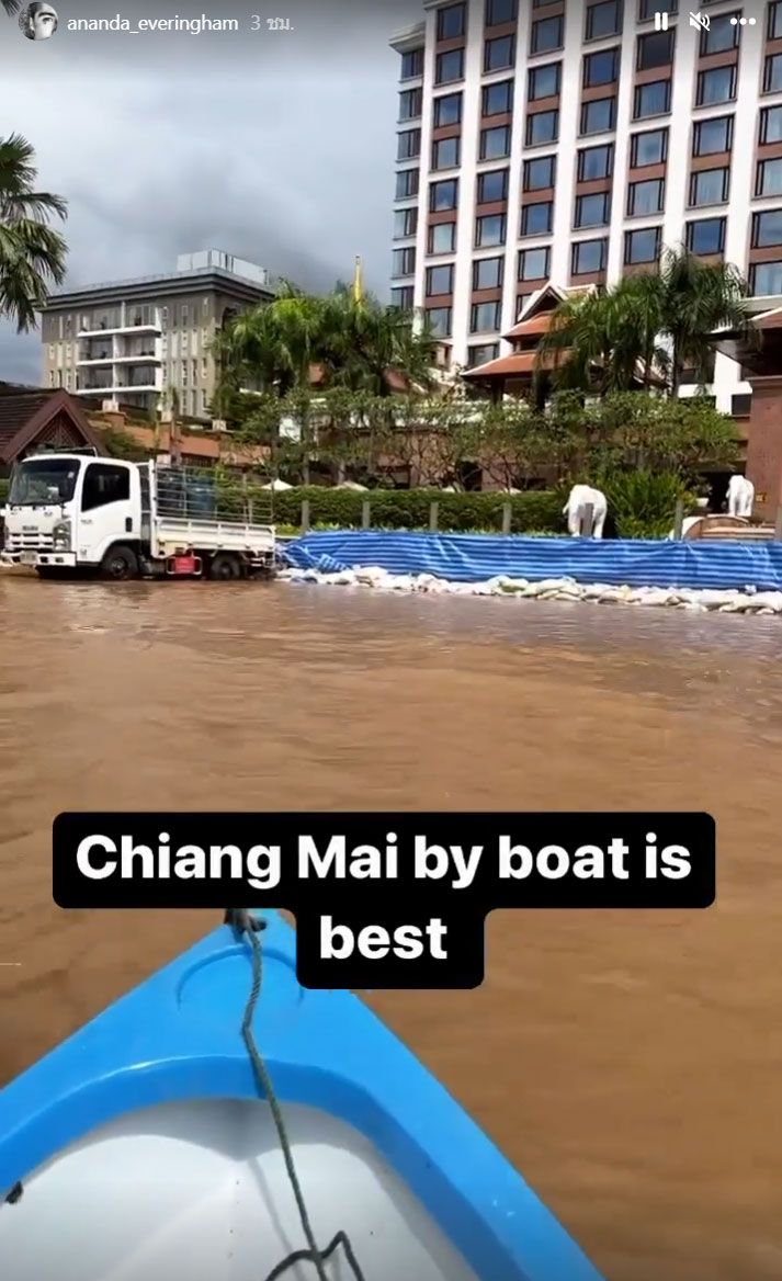 ล่าสุด พระเอกลูกครึ่ง “อนันดา เอเวอริ่งแฮม” ถึงกับอึ้งไม่น้อย หลังเจ้าตัวเดินทางไปทำงานที่ จ.เชียงใหม่ โดย อนันดาได้โพสต์คลิปวิดีโอผ่านอินสตาแกรมสตอรี่เผยให้เห็นภาพน้ำท่วมขังในจังหวัดเชียงใหม่ รวมถึงบริเวณหน้าโรงแรมที่พักที่เจ้าตัวกำลังจะเดินทางเข้าไปพัก แต่ตอนนี้ไม่สามารถเดินหรือโดยสารด้วยรถยนต์เข้าไปได้ เนื่องจากมีน้ำท่วมสูง