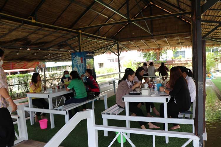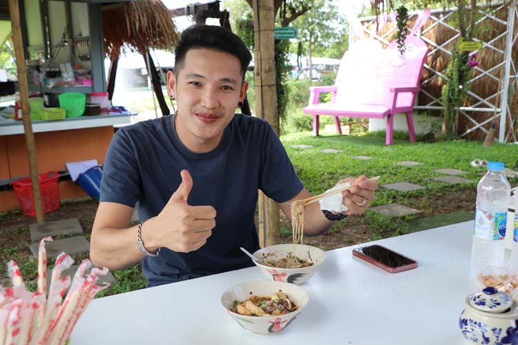 ทางด้าน นางสาวจันทร์สุดา น้อยหวองวุ้น อายุ 38ปี เจ้าของร้าน ก๋วยเตี๋ยวเรือกระทิสด แม่การระเกต ขอเชิญชิมก๋วยเตี๋ยวหมูกระทิสด ราคา15 บาท และอาหารตามสั่งหลายรายการ ให้ อิ่มอร่อยฟิน ในบรรยากาศหลักล้าน นั่งรับประทานอารหารแบบอร่อยฟิน ท่ามกลางบรรยากาศ สุดชิล ตั้งอยู่บริเวณหน้าหมู่บ้านวีแลนด์ จุดสังเกตุ มีน้ำพุอยู่กลางคอลง ร้านตกแต่งเป็นสไตลบ้านทุ่ง มีจุดถ่ายรูป น้ำตก บ่อปลาคาราฟ หุ่นไล่กา ชิงช้า สีชมพู เปิดตั้งแต่เวา 09.00 น.-15.00น.ของทุกวัน. -008