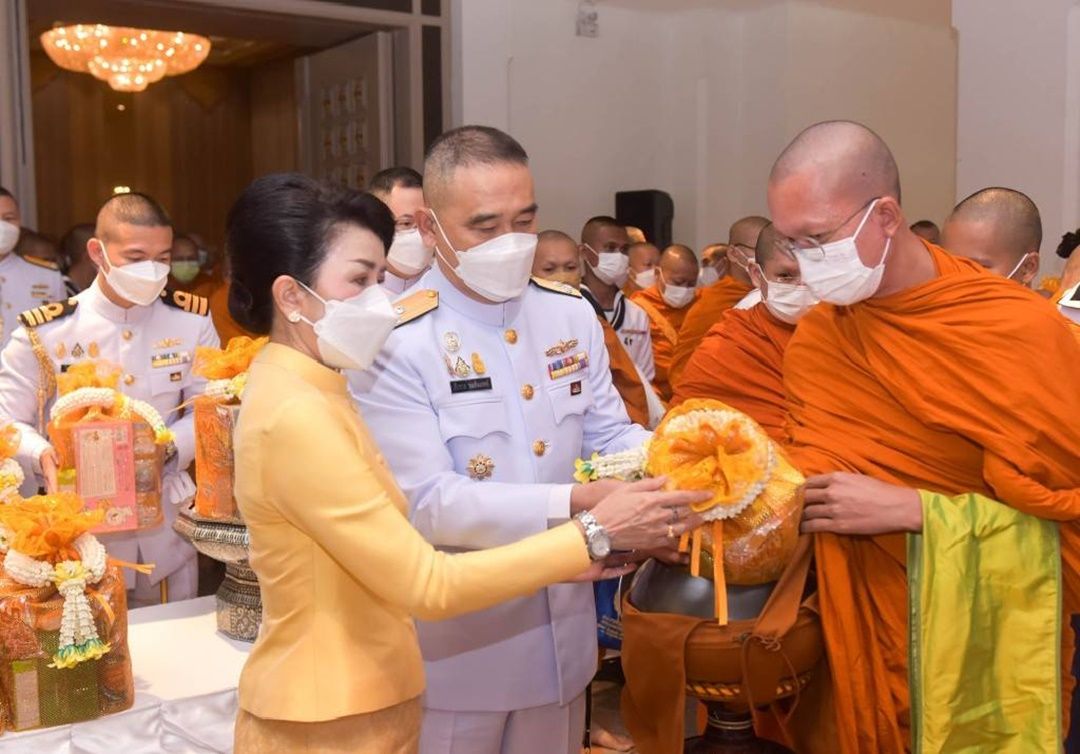 โดยในเวลา 07.10 น. พล.ร.อ.เชิงชาย ชมเชิงแพทย์ ผู้บัญชาการทหารเรือ เป็นประธานในพิธีทำบุญตักบาตรพระภิกษุและสามเณร โดยนิมนต์พระสงฆ์จากวัดโมลีโลกยารามราชวรวิหาร จำนวน 45 รูป วัดอรุณราชวราราม ราชวรมหาวิหาร จำนวน 20 รูป และวัดชิโนรสารามวรวิหาร จำนวน 24 รูป รวมทั้งสิ้น จำนวน 89 รูป ณ ลานทัศนาภิรมย์ หอประชุมกองทัพเรือ โดยมี นางจตุพร ชมเชิงแพทย์ นายกสมาคมภริยาทหารเรือ และคณะนายทหารชั้นผู้ใหญ่ของกองทัพเรือพร้อมภริยา เข้าร่วมพิธี