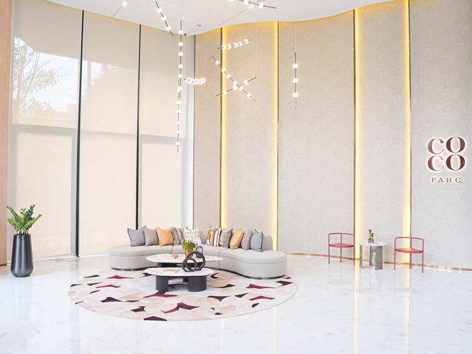 สำหรับ งานที่รับผิดชอบอยู่ในฐานะดีไซเนอร์ ในส่วนโครงการที่ต้องการให้เราออกแบบในคอนเซ็ปต์ Biophilic Design ทาง dwp จะเน้นหลักการอยู่ 3 ข้อ คือ Direct Contact หรือจากคนสู่คน ก็คือการใช้ต้นไม้และพืชพรรณต่าง ๆ มาตกแต่งโดยตรง ลมธรรมชาติ ใช้แสงธรรมชาติที่ส่งถึงตัวผู้อยู่อาศัยได้โดยตรง Indirect Contact หรือการจำลององค์ประกอบธรรมชาติ โครงสร้าง รูปทรงต่าง ๆ ความโค้งมน วงกลม ทรงเหลี่ยม ข้อสุดท้าย คือ การใช้วัสดุทดแทนธรรมชาติ อย่างเราใช้ไม้ลามิเนตแทนการใช้ไม้จริง ใช้กระเบื้องแทนการใช้หินจริง เพื่อให้ความรู้สึกเติมเต็มด้านอารมณ์ความรู้สึกให้ได้มากที่สุด ที่กล่าวมาทั้ง 3 ข้อ ล้วนแต่เป็นการออกแบบโดยอิงจากสัญชาตญาณของมนุษย์ทั้งสิ้น เน้นความโปร่ง-โล่ง-สบาย-ไม่ทึบตัน และมีพื้นที่ส่วนตัว และที่ COCO PARC Managed by DUSIT พระราม 4 เป็นอีกหนึ่งโครงการที่มีครบทุกอย่าง เห็นได้ชัดเจน คือ บริเวณล็อบบี้ที่สูงกว่า 6 เมตร เน้นไม้เป็นวัสดุหลัก สลับกับดีไซน์ผนังกำแพงเป็นกระจกใสที่มีความโค้งเว้า รูปทรงต่าง ๆ รอบอาคารจัดสรรให้เป็นต้นไม้สีเขียวเต็มพื้นที่ ทางโครงการให้ความสำคัญในเรื่องนี้มาก ด้านในอาคารตกแต่งด้วยวัสดุทดแทนธรรมชาติ แต่ละโซนตอบโจทย์ในแง่ของการใช้ชีวิตอย่างแท้จริง จัดสรรพื้นที่หลากหลาย มีมุมส่วนตัวให้ได้ผ่อนคลาย แม้โครงการจะอยู่ในเมืองก็ตาม แต่เราอยากทำพื้นที่ตรงนี้ ให้กลายเป็นพื้นที่สำหรับผู้อยู่อาศัยทุกคน ที่มีไลฟ์สไตล์แตกต่างกันให้อยู่ร่วมกันได้อย่างลงตัว