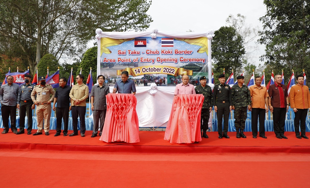 วันที่ 14 ต.ค.65 ที่บริเวณจุดผ่อนปรนการค้าช่องสายตะกู ต.จันทบเพชร อ.บ้านกรวด จ.บุรีรัมย์ นายไชยวัฒน์ จุนถิระพงศ์ รองผู้ว่าราชการจังหวัดบุรีรัมย์ พร้อมด้วยนายแปน โกะซอล ผู้ว่าราชการจังหวัดอุดรมีชัย ราชอาณาจักรกัมพูชา ร่วมเป็นประธานในพิธีเปิดจุดผ่อนปรนการค้าช่องสายตะกู ต.จันทบเพชร อ.บ้านกรวด จ.บุรีรัมย์ ราชอาณาจักรไทย กับช่องจุ๊บโกกี อ.บันเตียอัมปึล จ.อุดรมีชัย ราชอาณาจักรกัมพูชา อย่างเป็นการแล้วหลังจากก่อนหน้านี้ได้มีความจำเป็นต้องระงับการเดินทางเข้า-ออกและการขนส่งสินค้า ผ่านบริเวณจุดผ่อนปรนการค้าช่องสายตะกู-จุ๊บโกกี มานานกว่า 3 ปีแล้ว จากผลกระทบจากสถานการณ์การแพร่ระบาดของโรคติดเชื้อไวรัส โควิด-19 ในห้วงที่ผ่านมา