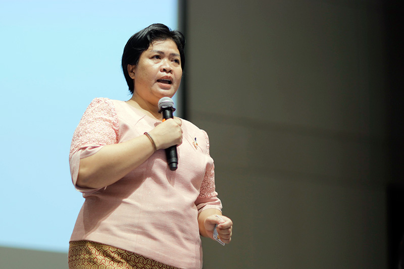 ปิดท้ายที่ อำพร วงค์ษา หรือ ครูอ้อ ประธานศูนย์หัตถกรรมบ้านงานฝีมือผาหนาม จ.ลำพูน และเจ้าของก๋วยเตี๋ยวลำไยแปรรูป แบรนด์ “ไร่วงค์ษา” ที่ลาออกจากการเป็นครูพี่เลี้ยงในโรงเรียนอนุบาลมาดูแลแม่ที่เจ็บป่วย ทำให้ขาดรายได้ประจำและมีปัญหาเรื่องค่าใช้จ่าย ทั้งยังแบกภาระหนักเมื่อสามีล้มป่วย และยังรับหน้าที่ดูแลลูก จึงฝึกฝนพัฒนางานฝีมือหัตถกรรมสร้างรายได้เสริม ซึ่งโครงการพลังชุมชนสอนให้พึ่งตนเอง นำความรู้มาพัฒนาต่อยอดในหลายเรื่อง เมื่อลำไยราคาตกก็แปรรูปเป็นก๋วยเตี๋ยวลำไย ฝึกฝนทำงานหัตถกรรมไปพร้อมกับดูแลครอบครัว นำความรู้เรื่องการจัดการ มาบริหารงานภายในกลุ่ม เชื่อมโยงกับเครือข่ายต่างเพื่อขยายฐานการผลิต ทั้งยังเปิดศูนย์เรียนรู้ ให้ชุมชนมีอาชีพ มีงานทำ รู้สึกภูมิใจมากที่ได้มายืนในจุดนี้”