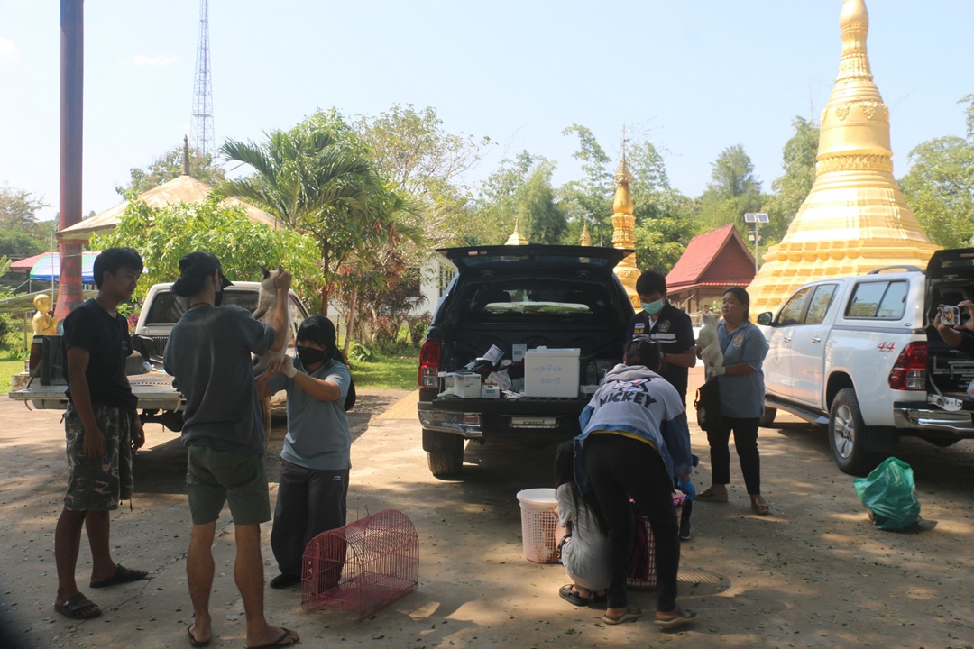โดยสุนัขจรจัดทั้งหมดที่จับ เจ้าหน้าที่ได้นำไปกักเอาไว้ภายในกรงที่ทางปศุสัตว์จัดเตรียมเอาไว้ โดย 1 กรงสามารถกัดสุนัขได้ 3-4 ตัว จากนั้นเจ้าหน้าที่จะเฝ้าดูอาการของสุนัขแต่ละตัวเป็นเวลา 10 วัน หากครบกำหนด10 วันแล้ว สุนัขไม่มีอาการจากการติดเชื้อสุนัขบ้า เจ้าหน้าที่จะได้นำไปไว้ในสถานที่ที่เหมาะสม ทั้งนี้นับตั้งแต่วันที่ 15 ต.ค.65 เป็นต้นมา เจ้าหน้าที่ได้ดำเนินการฉีดวัคซีนให้กับสุนัขและแมวของชาวบ้านไปแล้วกว่า 70 ตัว