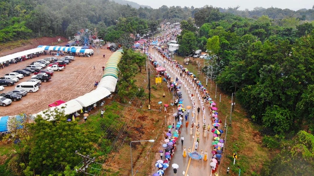 พุทธศาสนิกชนแห่ร่วมตักบาตรเทโวโรหณะภูสิงห์พระสงฆ์ 200 รูปปีที่ 18