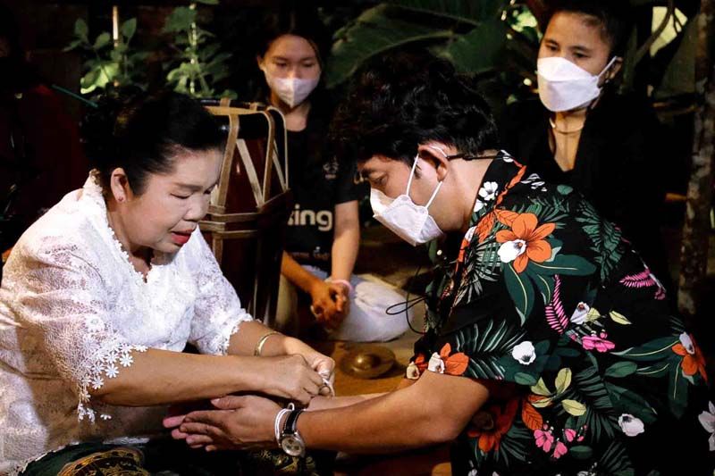 แต่จะให้มาดูอย่างเดียวก็ยังไงอยู่…อูเลยไม่วายขอลองทอผ้าด้วยซะเลย…จากนั้นไปดูอีกหนึ่งเอกลักษณ์ของบ้านนาต้นจั่นนั่นก็คือ การทำตุ๊กตาบาโหน บ้านตาวงษ์ งานที่ต้องใช้ฝีมือและความพิถีพิถันขนาดนี้ ก็เข้าทางอูสิจ้า…จะช้าอยู่ไย…ตรงดิ่งนั่งจดจ่อทำตุ๊กตาบาโหนอย่างจริงจังกันไปเลย…ตุ๊กตาบาโหนไม่ได้เป็นแค่ของเล่นหรือของที่ระลึกอย่างเดียวนะ แต่เขายังมีประโยชน์ ช่วยบริหารมือ บริหารนิ้ว ป้องกันนิ้วล็อกได้ดีอีกด้วย…มาเที่ยวบ้านนาต้นจั่นทั้งที ต้องไม่พลาดมาเช็คอิน เดินชมบรรยากาศท้องทุ่งที่สะพานใจเชื่อมทุ่ง สะพานไม้ไผ่ ที่มีความยาวถึง 1.5 กิโลเมตร ยิ่งถ้ามาในช่วงต้นข้าวโตเขียวหรือกำลังออกรวงสีทอง บอกเลยว่า…สวยมากๆ นะแกรร… แถมยังได้ดูพระอาทิตย์ตกด้วย เล่นเอาอูขอถ่ายรูปรัวๆ เลยทีเดียว…ก่อนที่จะกลับไปเอกเขนกตีลังกาพักที่โฮมสเตย์ ทิ้งท้ายของวันกับกิจกรรมการบายศรีสู่ขวัญต้อนรับและกินอาหารพื้นบ้านแบบขันโตก