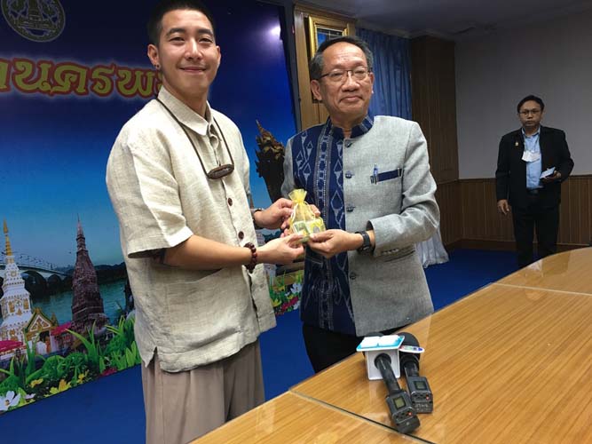 ในโอกาสนี้ นายชาญชัย คงทัน รองผู้ว่าราชการจังหวัดนครพนม ได้มอบเหรียญองค์พญาศรีสัตตนาคราช แลนด์มาร์คพญานาคศักดิ์สิทธิ์ ริมฝั่งแม่น้ำโขง เพื่อเป็นสิริมงคล และเป็นขวัญกำลังใจกับพระเอกหนุ่มโตโน่ ตามความเชื่อศรัทธาของชาวนครพนม เชื่อว่าจะแคล้วคลาดปลอดภัย และทำให้กิจกรรมลุล่วงไปด้วยดี อีกทั้งได้โอนเงินบริจาคส่วนตัว เป็นเงินจำนวน 999 บาทสนับสนุนเข้ากองทุน