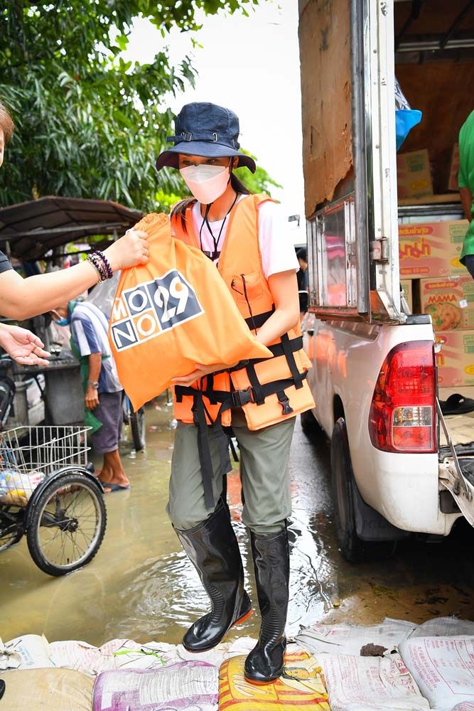ส่งใจสู้ภัยถึงประตูหน้าบ้าน สำหรับ แบงค์-พบเอก พรพงเมตตา และ เฟร้นช์ฟราย-รินทร์ณฐาอัจฉริยวัฒนกุล สองผู้ประกาศข่าวรายการ“เรื่องเด่น ประเด็นดัง” (Top Talk Daily) ทางช่อง MONO29 โดยทั้งคู่ร่วมแรงช่วยขนย้ายถุงยังชีพในโครงการ “MONO29 ปันด้วยใจสร้างรอยยิ้ม : สู้ภัยน้ำท่วม” เพื่อนำไปช่วยเหลือผู้ประสบภัยน้ำท่วม ณ เกาะเกร็ดจ.นนทบุรี ซึ่งมี คุณสุรจิตต์ ชื่นพันธุ์รองนายกองค์การบริหารส่วนตำบลเกาะเกร็ดเป็นตัวแทนรับมอบของอุปโภค-บริโภคจำนวนมาก เพื่อนำไปแจกจ่ายชาวบ้านชาวเกาะเกร็ดต่อไป ณ วัดฉิมพลี