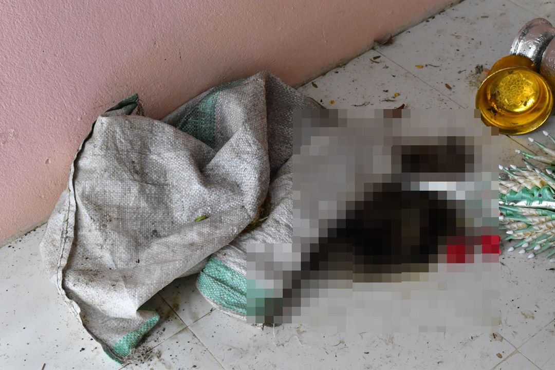 เบื้องต้นทางผู้ใหญ่บ้านและชาวบ้านก็ได้นำซากแมวที่ตายไปฝัง และพระก็สวดบังสกุลให้แล้วขอให้ไปเกิดเป็นมนุษย์อย่าเกิดมาเป็นแมวอีกเลย ส่วนลูกแมวทั้ง 2 ตัว ก็จะเอาไปเลี้ยงไว้ที่วัด ซึ่งอาตมาไม่รู้ว่าซากแมวที่ถูกนำมาทิ้งถูกฆ่าตายหรือตายเพราะสาเหตุอะไร หากถูกฆ่าก็ถือเป็นบาปและการพรากแม่ลูกก็เป็นบาปกรรมมาก แต่ไม่รู้ว่าคนที่นำมาทิ้งไว้ที่ศาลมีจุดประสงค์อะไร แต่ก็เชื่อว่าใครทำกรรมอะไรก็จะได้รับผลกรรมนั้น ซึ่งที่ผ่านมา ก็มีคนนำหมา แมวมาปล่อยทิ้งที่วัดเรื่อยๆ ทางวัดก็ต้องดูแลให้อาหารไม่น้อยกว่า 30 ตัว ก็อยากฝากถึงคนที่คิดจะเลี้ยงหมา แมวก็ไม่ควรจะทำแบบนี้ เพราะชีวิตใครๆ ก็รัก – 003