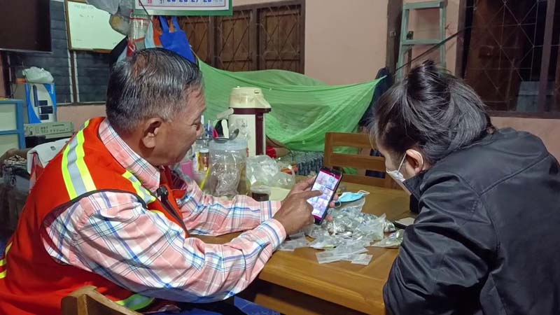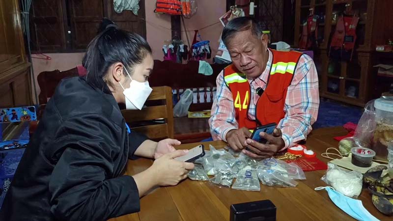เมื่อไปถึงหนี้ร้าน ตนก็ลงไปที่ร้านเข้าไปสอบถามกับทางร้านว่ารับเหรียญและแบงก์ 20 , 50 บาทหรือไม่ ทางร้านบอกว่ารับแต่ขอไม่รับเหรียญบาท เนื่องจากพนักงานนับไม่ทัน จากนั้นตนก็เดินกลับมาที่รถ เพื่อกลับมานำเงินที่ใส่ไว้ในถุงผ้าแบกขึ้นบ่าตามที่ปรากฎในคลิป ซึ่งตนก็ไม่ทราบว่าลูกสะใภ้เป็นคนถ่ายคลิปเอาไว้ เมื่อไปถึงร้าน พนักงานก็ช่วยกันนับแต่มีเสียงร้องตกใจของพนักงาน ไม่คิดว่าลุงจะเอามาจริง และก็ไม่คิดว่าจะเป็นเหมือนในข่าว ซึ่งทางร้านก็ช่วยกันนับใช้เวลาประมาณ 2-3 ชั่วโมงจึงนับเสร็จ ตนก็เลือกซื้อสร้อยข้อมือทองคำหนัก 5 บาทและแหวะทองคำหนัก 1 บาท รวมหนัก 6 บาท ก่อนจะเดินทางกลับยังบ้านพักฃ
