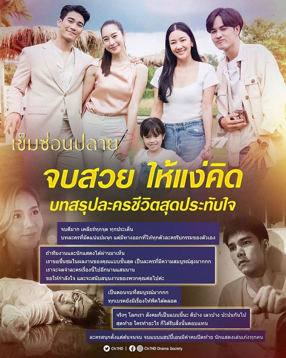 “ละคร เข็มซ่อนปลาย ก็จบไปเป็นที่เรียบร้อยแล้วนะคะ ขอบคุณผู้ชมทุกคนจากทุกๆ ช่องทางเลยนะคะ มีคำติ คำชมอะไรเจี๊ยบก็จะน้อมรับไว้ทั้งหมดนะคะ แล้วก็ดีใจ ที่ได้อ่านข้อความจากแฟนๆ ที่คอมเมนต์ผ่านโชเชียลต่างๆ เยอะมากที่บอกว่าสนุก ติดตามมาตลอด ก็ในช่วงเวลาหนึ่งของชีวิต ตลอดสองเดือนที่ผ่านมานี้ ดีใจนะคะที่ทำให้แฟนละครทุกคนมีความสุขได้ ไม่รู้ว่าจะได้กลับมาเจอกันอีกเมื่อไหร่ แต่ก็หวังว่าเจี๊ยบจะได้กลับมาทำละครให้ทุกคนได้ชมอีกครั้งนะคะ ขอกลับไปเก็บเกี่ยวประสบการณ์ หาแรงบันดาลใจรวบรวมคำติชมของทุกคน มาปรับปรุงสำหรับงานในครั้งต่อไป ซึ่งน่าจะอีกพักใหญ่ๆ ขอบคุณทีมงานของเจี๊ยบ กับนักแสดง เข็มซ่อนปลาย ทุกคนด้วยนะคะ และที่สำคัญขอบคุณทีมงานช่อง 7HD และช่อง 7HD มากๆ ที่สนับสนุน ช่วยเหลือกันมาตลอด ขอบพระคุณจากใจเจี๊ยบ จากใจนักแสดง และทีมเข็มซ่อนปลาย ทุกคนค่ะ ขอบพระคุณค่ะ” ติดตามชมละครชีวิตสุดเข้มข้น “เข็มซ่อนปลาย” ย้อนหลังได้ทาง BUGABOO.TV และทุกวันพุธ-พฤหัสบดี ติดตามชมละครหลังข่าวภาคค่ำเรื่องใหม่เรื่อง “ชาติพยัคฆ์ คมนักเลง”เวลา 20.30 น. ทางช่อง 7HD
