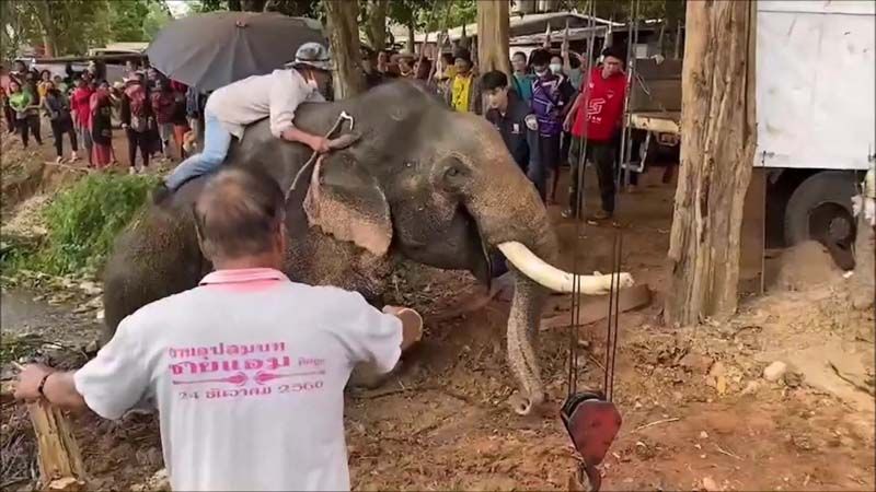 สุดท้ายเจ้าช้างตัวนี้ค่อยๆ ยกขาหน้าปีนป่ายจนขึ้นมาได้ ท่ามกลางเสียงลุ้นอยู่นาน ในที่สุดช้างตัวนี้ก็ปีนขึ้นจากหนองน้ำได้ ชาวบ้านที่ส่งเสียงเชียร์ใกล้ๆพากันเฮลั่นคำชะโนด ดีใจช้างตัวใหญ่ขึ้นมาได้