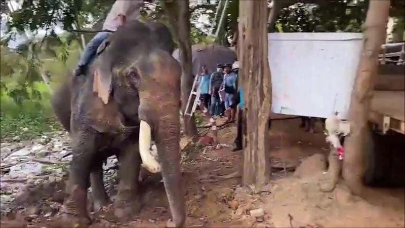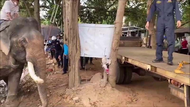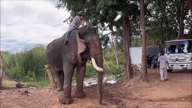 ต่อมาชาวบ้านจึงได้นำรถไถปรับพื้นที่ริมหนองน้ำให้เป็นทางลาดเอียง และช่วยกันส่งแรงเชียร์ให้ช้างขึ้นจากน้ำให้ได้ โดยไม่มีการระบุว่าช้างชื่ออะไร มาทำอะไรที่คำชะโนด