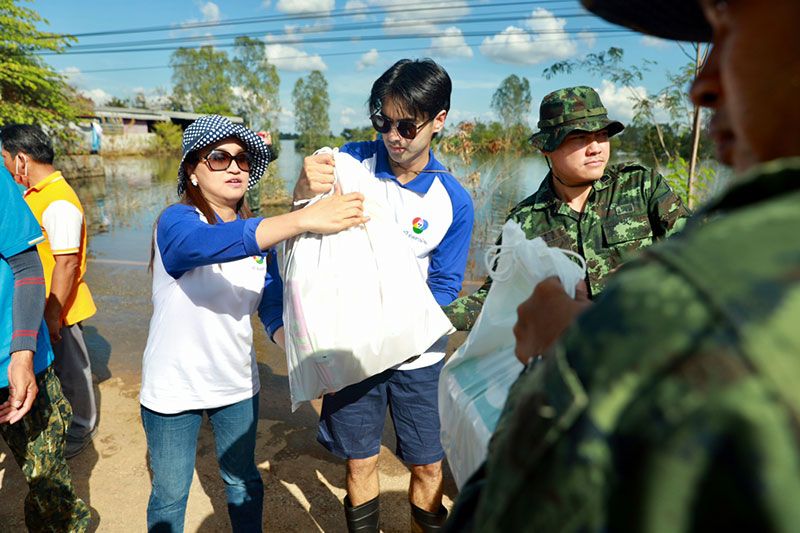 อ๊อฟ-ชนะพล เผย “ดีใจและอิ่มใจมากครับที่ได้มีโอกาสมาร่วมส่งกำลังใจผ่านถุงยังชีพให้กับพี่น้องที่ได้รับความเดือดร้อนในพื้นที่ บางบ้านน้ำยังท่วมสูง ประสบความยากลำบาก ซึ่งทุกแห่งที่พวกเรานักแสดง ผู้ประกาศข่าวจากช่อง 7HD ไปส่งพลังใจความห่วงใยใกล้ชิดช่วยทำให้ทุกคนมีรอยยิ้มผ่อนคลายความเครียดนั้น พวกเรายังได้รับน้ำใจความห่วงใยจากผู้ประสบภัยอวยชัยให้พรเรากลับมาอีกด้วย รู้สึกอิ่มใจ ใจฟูทีเดียวขอให้ทุกคนสู้ๆ นะครับ”