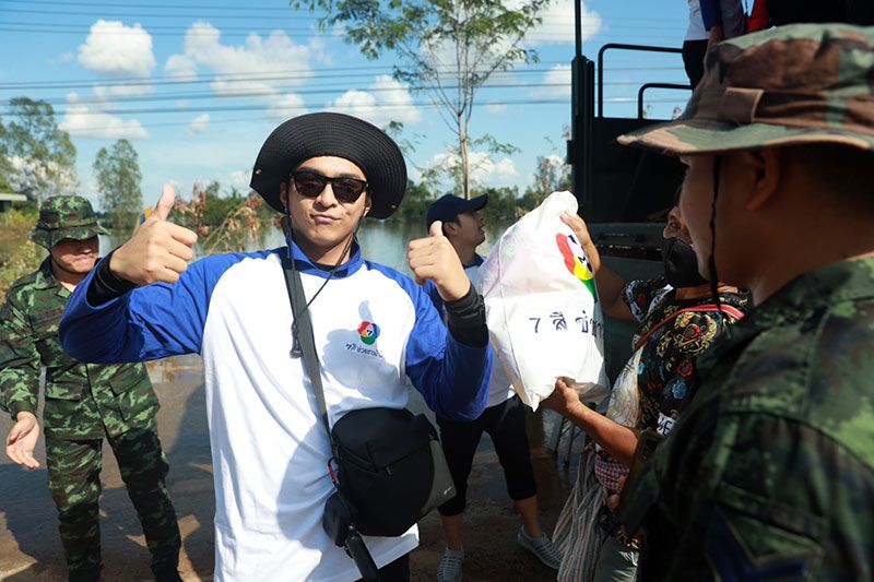 ช่อง 7HD โดยโครงการ “7 สี ช่วยชาวบ้าน” ส่งพระเอกหนุ่ม อ๊อฟ-ชนะพล สัตยา และ โหน-ธนากร ศรีบรรจง พร้อมด้วยคนข่าว จีรนันท์ เขตพงศ์ และ ธนพัต กิตติบดีสกุล จากรายการ 7 สีช่วยชาวบ้าน รุดเดินทางเข้าถึงพื้นที่บ้านเทิน หมู่ 2/8 และหมู่ 11 ต.บัวน้อย และบ้านหนองเทา หมู่ 3 และหมู่ 9 ต.เมืองน้อยอ.กันทรารมย์ จ.ศรีสะเกษ มอบถุงยังชีพรวม 200 ชุด เพื่อช่วยบรรเทาความเดือดร้อนให้ผู้ประสบภัยตามบ้านเรือนที่ยังคงใช้ชีวิตอยู่ด้วยความยากลำบาก
