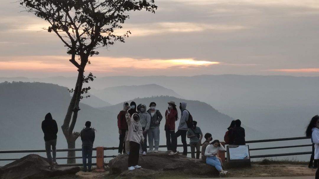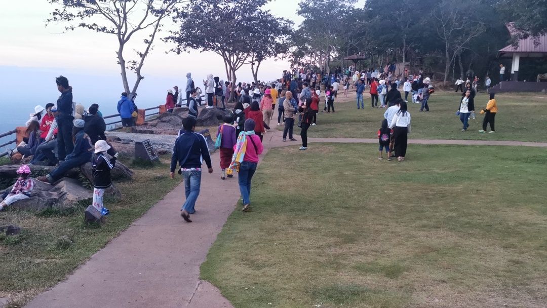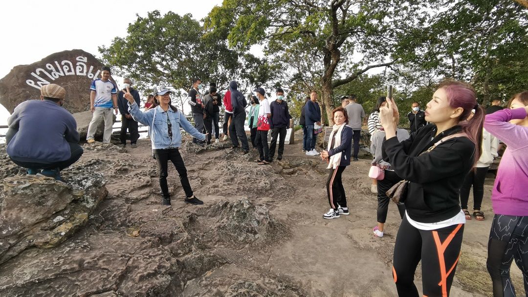 นักท่องเที่ยวแห่ขึ้นชมทิวทัศน์สัมผัสหนาวแรก ‘ผามออีแดง’ คึกคัก