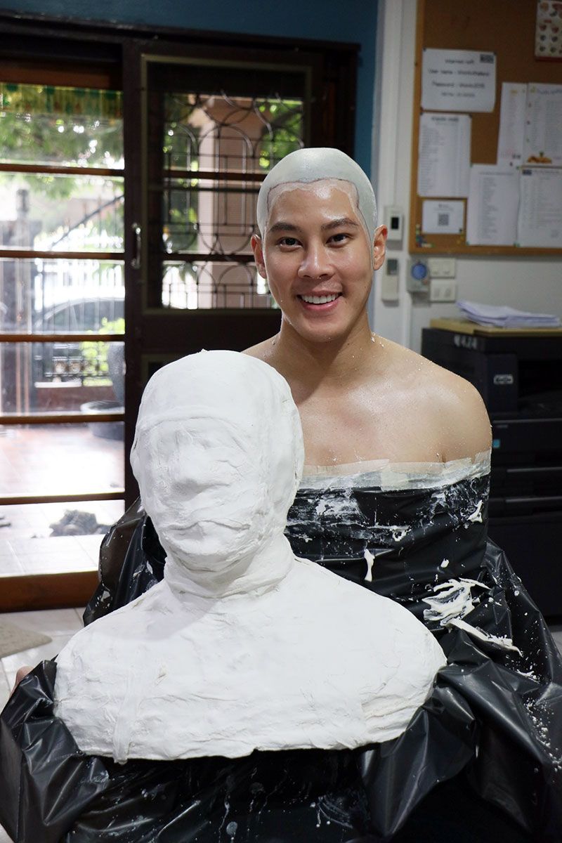 บอกเลยว่ากว่าจะมาเป็นตัวละครฮีโร่ มันไม่ง่ายเลยเพราะหนุ่มเบนต้องใช้ความอดทนกับการหล่อหน้ากากครั้งนี้นานกว่า 2 ชั่วโมงกันเลยทีเดียว และสาเหตุที่ต้องหล่อหน้ากากขึ้นมาเพื่อให้หน้ากากกระชับเข้ากับหน้าของเบนได้ดีเพราะตัวละครฮีโร่ ต้องมีการต่อสู้ บู๊ แอ๊กชั่น ทุกอย่างจะได้ลงตัว เริ่มต้นด้วยพี่ๆ ทีมงานต้องนำพลาสติกมาคลุมผมให้หมด จากนั้นผสมอัลจิเนต เป็นสารสกัดจากธรรมชาติไม่เป็นอันตรายต่อผิวหนัง แล้วเทตั้งแต่ส่วนหัวลงมาถึงช่วงไหล่ ในขั้นตอนนี้ต้องอาศัยความรวดเร็วก่อนที่จะแห้ง แต่หนุ่มเบนอาจจะต้องทนอึดอัดหน่อยเพราะเป็นการหล่อที่ปิดทุกส่วนยกเว้นบริเวณรูจมูกให้สามารถหายใจได้ปกติ หลังจากที่แห้งแล้ว ขั้นตอนของการแกะออกก็ไม่ง่ายเช่นเดียวกัน เนื่องจากต้องระวังการร้าวการแตกหักให้ช่วงที่แกะ ซึ่งทุกอย่างก็ผ่านพ้นไปด้วยดี ออกมาเป็นหน้ากากฮีโร่สวยงาม งานนี้ขอปรบมือดังๆ ให้กับความอดทนของพระเอกของเรา แฟนๆ อย่าลืมติดตามให้กำลังใจนายกุหลาบหรือฮีโร่ของเราได้ในละคร “พยัคฆ์ร้ายนายกุหลาบ” ทุกวันจันทร์-ศุกร์ เวลา 18.45 น. ทางช่อง 7 HD กด 35 นะคะ