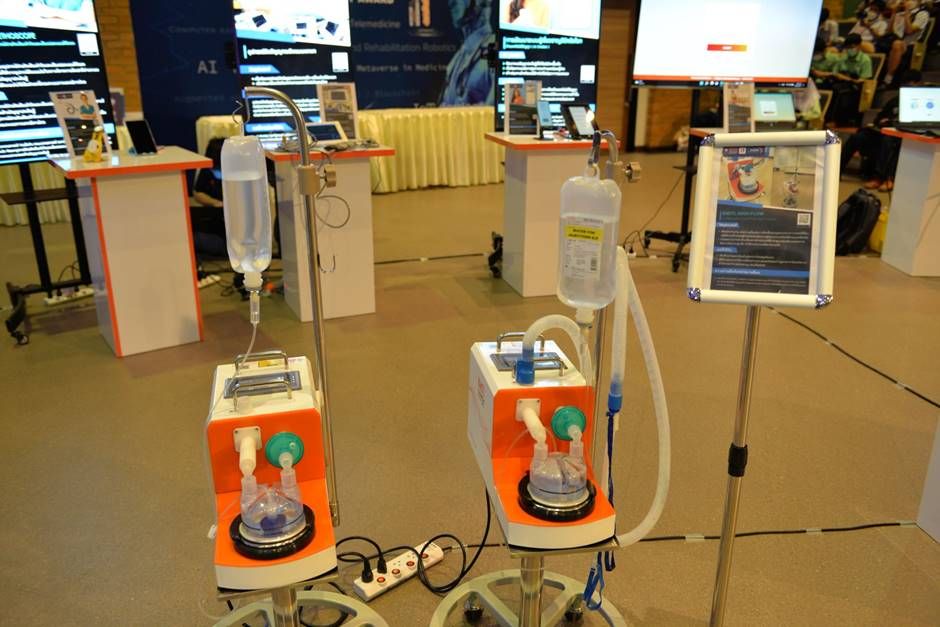 - Oxygen High Flowผลงานของกลุ่มนักศึกษา 6 คน ได้แก่นายธนกฤต ทวีสุนทร (ป.โทRobotics) นายธนภูมิ ภูมี (ป.โท IT) นายปริญญา ไสยโยธา, นายฐิติพงศ์ เทพสิทธิ์(ป.โทไฟฟ้า)นายกานต์ เกตุกระทึกและนายถิรวัฒน์ บุญสร้าง (ปี3Robotics)ที่ปรึกษา: รศ.ดร.สมยศ เกียรติวนิชวิไล, ดร.ภูมิ คงห้วยรอบ, นายศรุชา ยรรยง