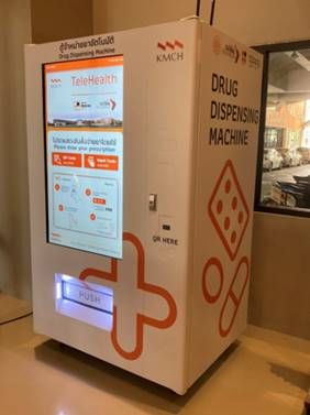 ตู้จำหน่ายยา เป็นนวัตกรรมที่ต้องการลดขั้นตอนการจ่ายยาจากการเข้าคิวรับยาที่เคาน์เตอร์มาเป็นการรับบริการที่ตู้จำหน่ายยา ลดขั้นตอนการอธิบายวิธีใช้ยาด้วยการสแกนใช้แอพพลิเคชั่นเพื่อดูวิธีการใช้ยาตามแพทย์สั่ง นอกจากนี้ตู้จำหน่ายยายังสามารถนำไปติดตั้งไว้สถานที่อื่นเพื่อรับยาร่วมกับระบบการแพทย์ทางไกลได้ด้วย