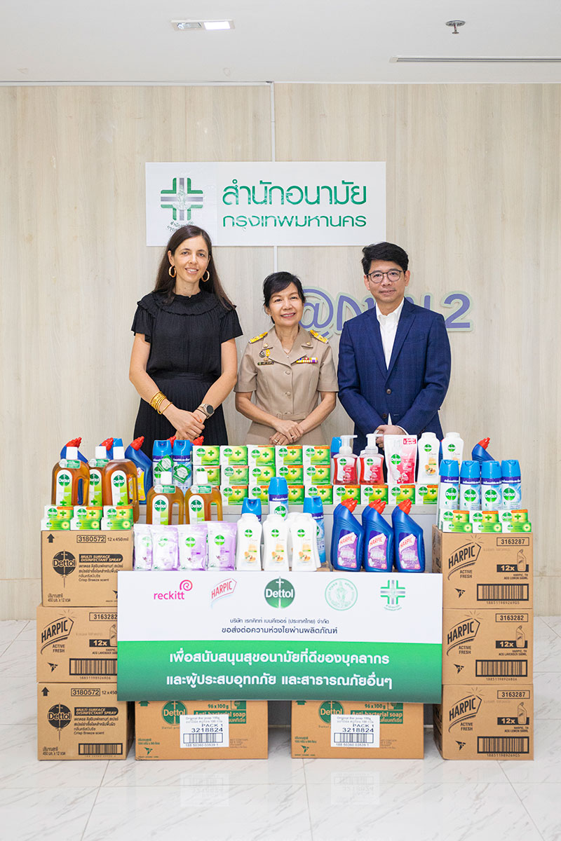 คณะผู้แทนจากบริษัท เรกคิทท์ เบนคีเซอร์ (ประเทศไทย) จำกัด ผู้ผลิตและจำหน่ายผลิตภัณฑ์ด้านสุขอนามัยภายใต้แบรนด์ “เดทตอล” (Dettol) และ “ฮาร์ปิค” (Hapic) นำโดย แอนเดรีย ซาราโกซา ผู้อำนวยการฝ่ายการตลาด Health/Hygiene และ ดร.นพ.ปณต ประพันธ์ศิลป์ ผู้อำนวยการฝ่ายการแพทย์และกิจการภายนอก เป็นตัวแทนส่งมอบผลิตภัณฑ์ด้านสุขอนามัยที่มีประสิทธิภาพในการฆ่าเชื้อไวรัส-แบคทีเรีย-เชื้อรา มูลค่ากว่า 1 ล้านบาท ให้แก่กรุงเทพมหานคร (กทม.) เพื่อสนับสนุนการดูแลประชาชนและชุมชน โดยเฉพาะในสถานการณ์ฝนตกหนักและมีน้ำท่วมขัง ณ ศาลาว่าการกรุงเทพมหานคร 2 ดินแดง