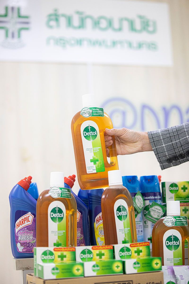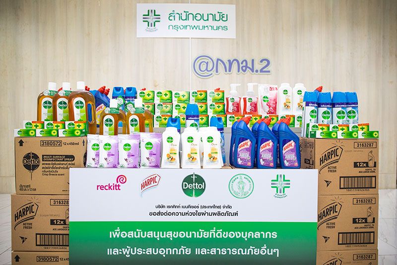 ทั้งนี้ บริษัทฯ มีความยินดีอย่างยิ่งที่จะเป็นส่วนหนึ่งในการดูแลคน กทม. ผ่านการมอบผลิตภัณฑ์ เดทตอล ออนเซ็น สบู่เหลวอาบน้ำ แอนตี้แบคทีเรีย, เดทตอล ดิสอินเฟคแทนท์ สเปรย์, เดทตอล ผ้าเช็ดทำความสะอาดผิวแบบเปียก สูตรเซนซิทีฟ, เดทตอล โฟมล้างมือ แอนตี้แบคทีเรีย สูตรโรสแอนด์เชอร์รี่, เดทตอล สบู่ก้อน แอนตี้แบคทีเรีย, ฮาร์ปิค น้ำยาล้างห้องน้ำ กลิ่นลาเวนเดอร์, ฮาร์ปิค น้ำยาล้างห้องน้ำ กลิ่นเลมอน รวมกว่า 3,000 ลัง มูลค่ามากกว่า 1 ล้านบาท