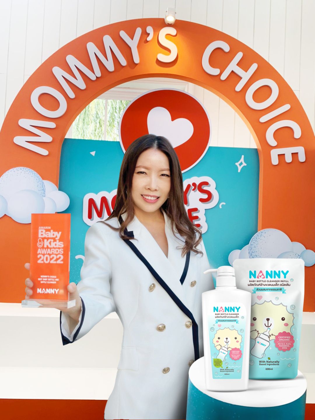 แนนนี่ (Nanny)ผลิตภัณฑ์แม่และเด็กที่มาพร้อมแนวคิด “ผู้ช่วยคนดีที่แม่มั่นใจ” ตอกย้ำมาตรฐานความปลอดภัยและใส่ใจในความสะอาดคว้ารางวัลแบรนด์ในดวงใจคุณแม่ต่อเนื่องเป็นปีที่ 3 จาก“ผลิตภัณฑ์ล้างขวดนมเด็ก Nanny”ได้รับรางวัลการันตีคุณภาพผลิตภัณฑ์ในสาขาที่สุดของน้ำยาล้างขวดนม:Mommy’s Choice Best Baby Bottle And Nipple CleanserจากเวทีการประกาศรางวัลAmarin Baby & Kids Awards 2022 ภายในงาน รุ้งทอง คุณประภากร ผู้จัดการฝ่ายการตลาดแบรนด์แนนนี่ (Nanny) ขึ้นรับรางวัลอันทรงเกียรติที่มาจากการโหวตจากคุณแม่กว่า 30,000 คนทั่วประเทศเน้นย้ำความเป็นผู้นำด้านผลิตภัณฑ์แม่และเด็ก ที่เป็นที่นิยมของคุณแม่มากที่สุดในประเทศไทย ส่งต่อความรู้และสินค้าตัวท็อปจากแม่สู่ลูกอย่างแท้จริง โดยงานประกาศรางวัลแบรนด์ในดวงใจคุณแม่ABK Awards 2022จัดขึ้นโดย Amarin Baby & Kids เว็บไซต์สำหรับแม่ลูกที่มีผู้ติดตามมากกว่า 1 ล้านคน