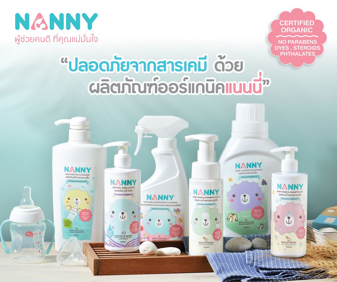 ด้วยแนวคิด “ผู้ช่วยคนดีที่แม่มั่นใจ” ช่วยให้คุณแม่ยุคใหม่เลี้ยงลูกได้อย่างมีความสุข Nanny มีหลากหลายผลิตภัณฑ์ที่เหมาะสมกับลูกน้อยตั้งแต่แรกเกิด ให้เลือกสรรตามความต้องการและเหมาะสมในแต่ละช่วงวัย Nanny ยังมีกลุ่มผลิตภัณฑ์ออแกนิกเพื่อสุขอนามัย เช่น โฟมอาบน้ำเด็ก เจลอาบน้ำ โลชั่น น้ำยาซักผ้า และผลิตภัณฑ์ทำความสะอาดของเล่นและของใช้เด็ก รวมถึงผลิตภัณฑ์ถุงเก็บน้ำนมแม่ที่ได้รับความนิยมเป็นอย่างมากด้วยคุณภาพที่การันตีรักษาคุณค่าของน้ำนมแม่