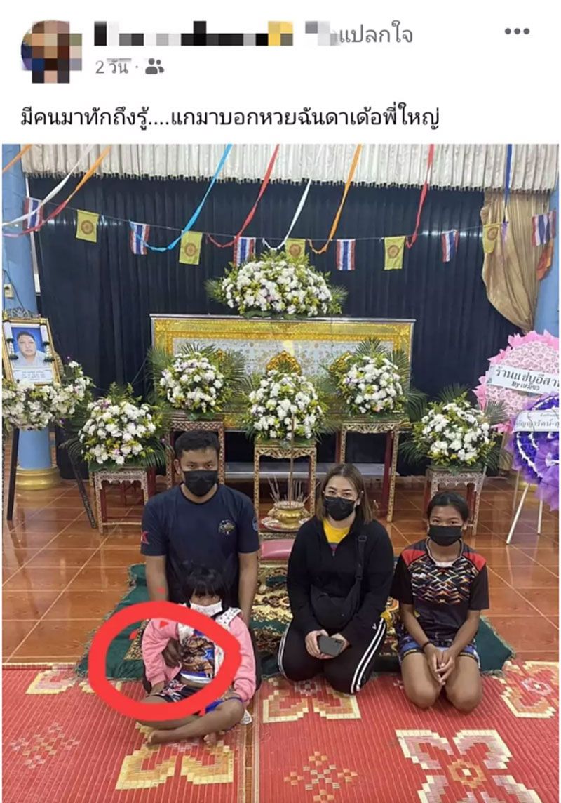 ขณะที่ ชายที่นั่งถ่ายภาพร่วมกับเด็กหญิง กล่าวว่า ตนได้ร่วมถ่ายภาพหน้าศพกับน้อง ซึ่งยืนยันว่าไม่ใช่มือของตนอย่างแน่นอน โดยขณะถ่ายภาพตนวางมือไว้บนเข่าทั้ง 2 ข้าง